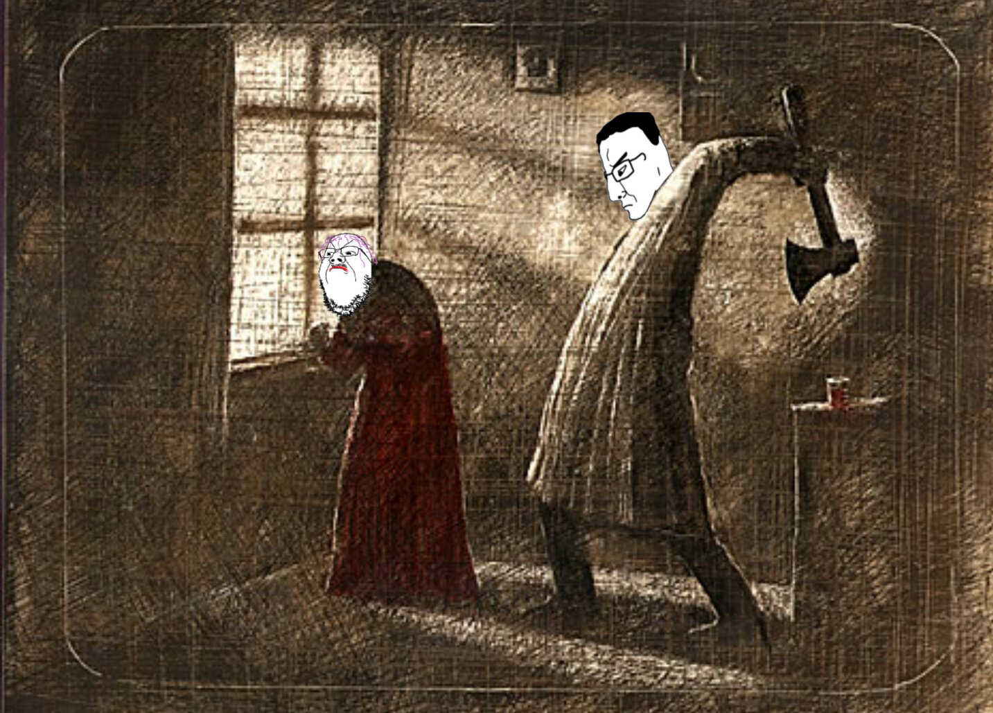you haven't read the book lil bro he hits her with the back side of the axe pipe down cuh fr