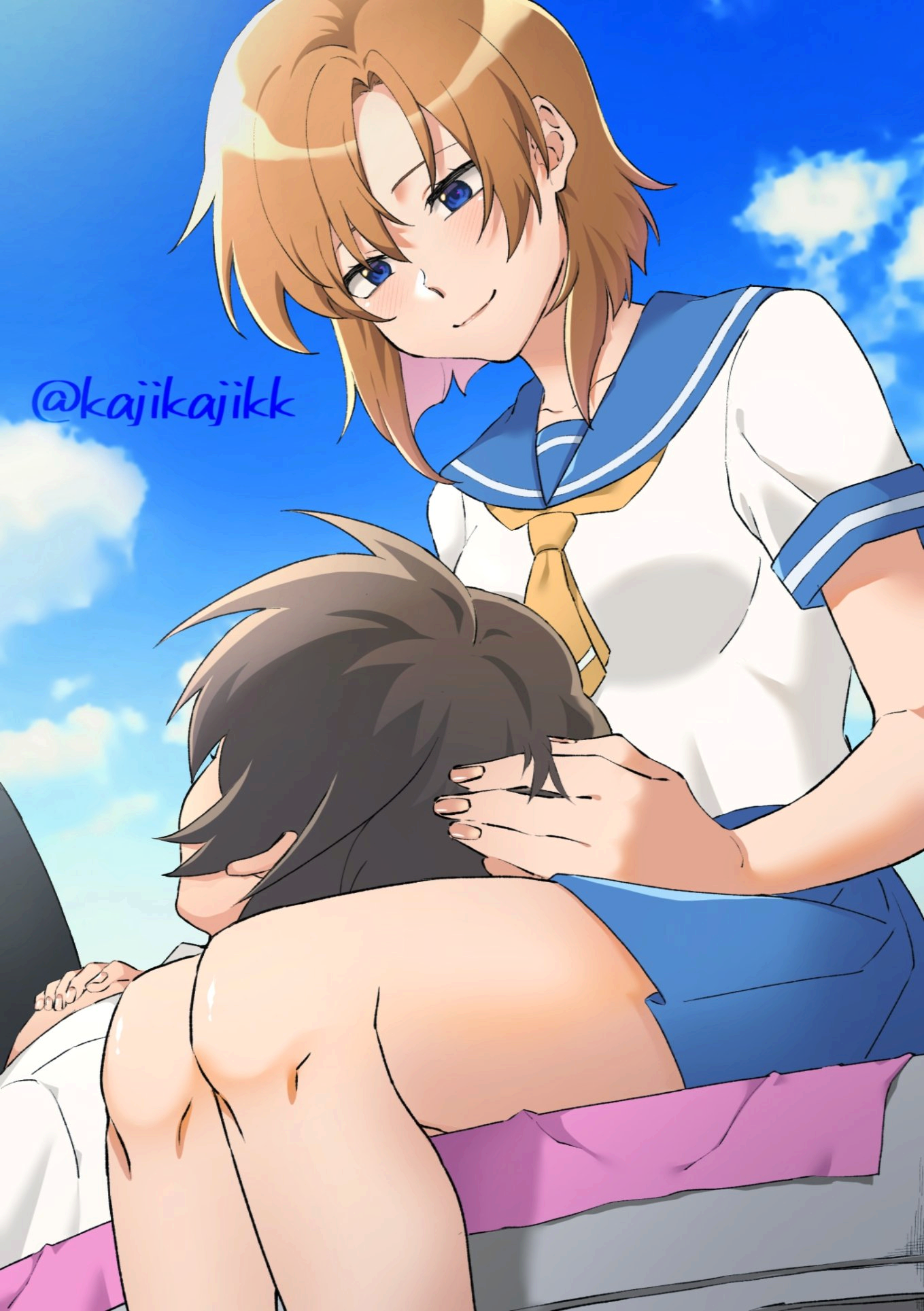 The two of them really bonded from there, they begun hanging around each other more without Satoko and the others. No-one really thought anything of it of course, they were 2 guys with similar interests in a group with 5 girls, it was unsurprising that the two became so close. What they didn't tell the others though was just how close they'd gotten. Yes, Hōjō Satoshi and Maebara Keiichi were officially (secretly) in a relationship.