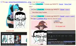 It's come to my attention that the average user of this site has a lot of hostility and hate in their heart towards those who are different. For my own mental health, I'm taking a break from posting as much, as too much of engaging with this behavior is making me lose brain cells and sanity. Not all of you are bad, but so many of you are toxic that it is making me question how much I should use this website. I can't talk sense into or connect with people who are just haters all the time. Some of you guys really need to calm down. You have more in common with fellow posters, you don't need to see everyone as "the enemy/outsider" like you are a full on nazi, trying to purge anyone who isn't as exclusionary as you are. Nusois like this are desperate to rulecuck and ban things because they think the whole point of this site is to harass people different than them.