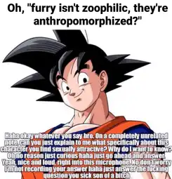 also furry shit isn't beastiality brainlet or something