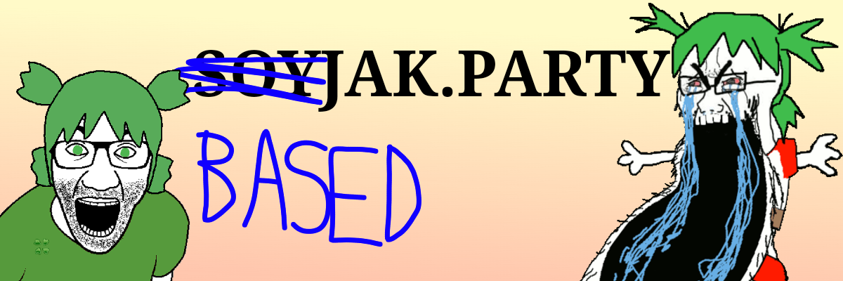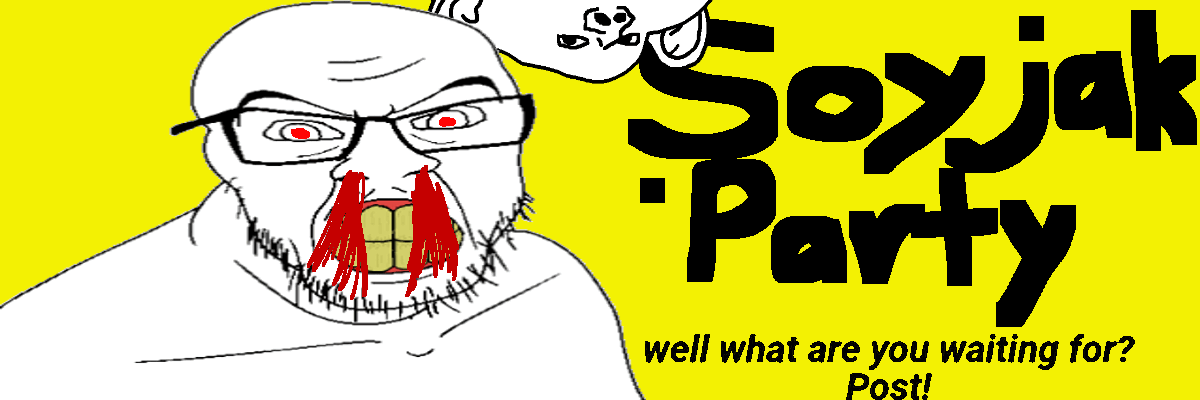 for the new boards from 4cuck rapefugees you guys should grab the banner they had in 4cuck, and add some soy on it (and change the 4chan to soyjak.party)