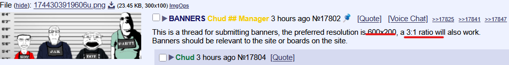 >>155927board banners have to be 800x100, or just anything that is an 8:1 resolution. mustard didn't specify this