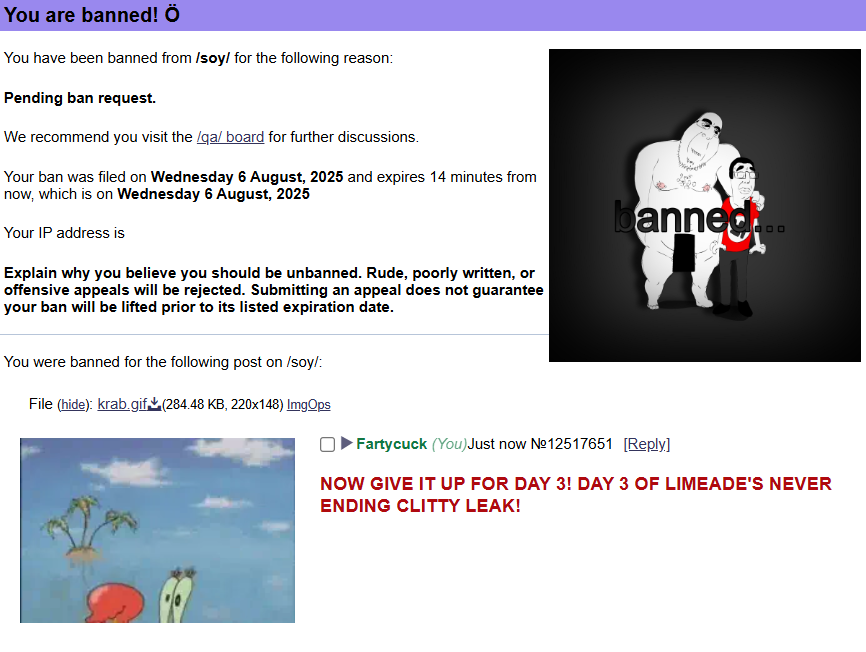 >>161874I wasn't talking about myself, doll used to fire jannies over pretty much nothing (slightly inconveniencing him). He was still doing it on the booru until recently when we put soysneed up as booru headmin.