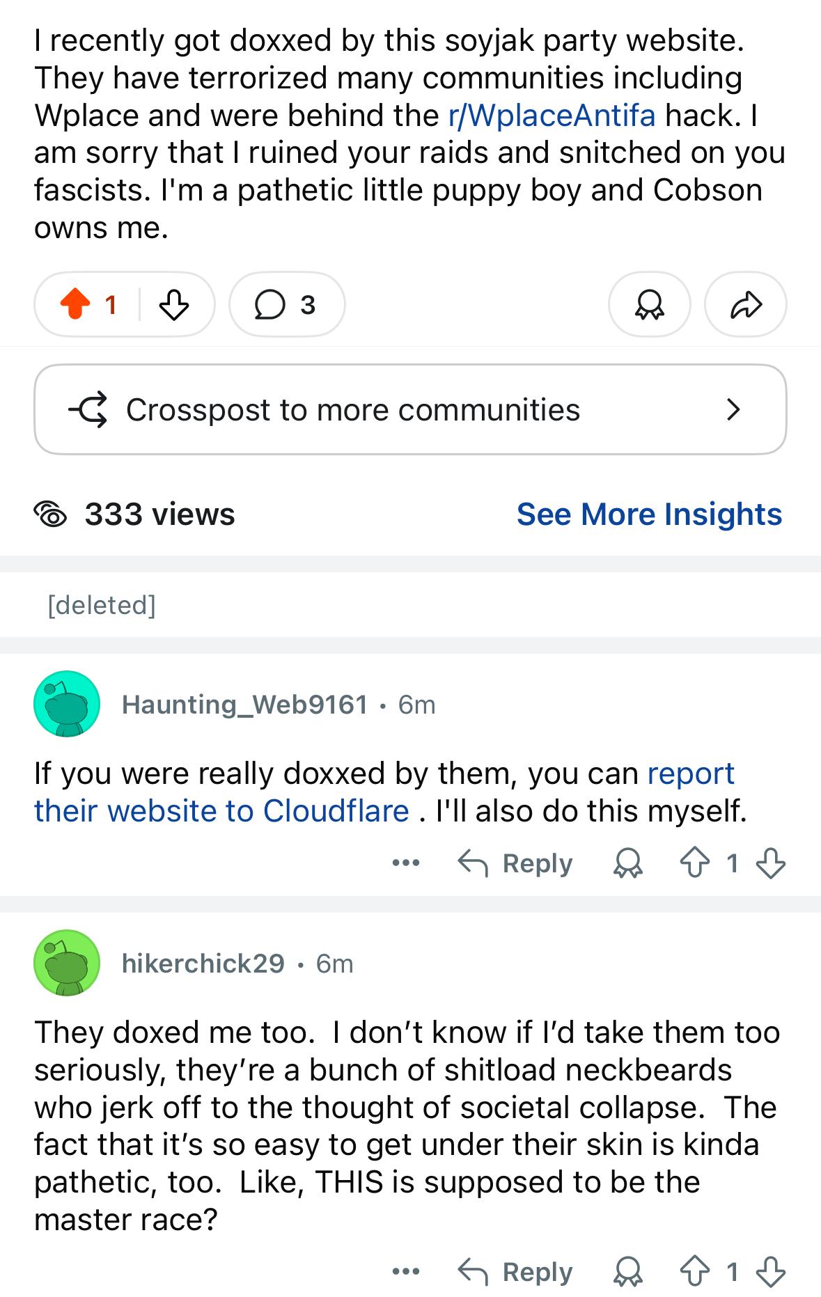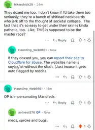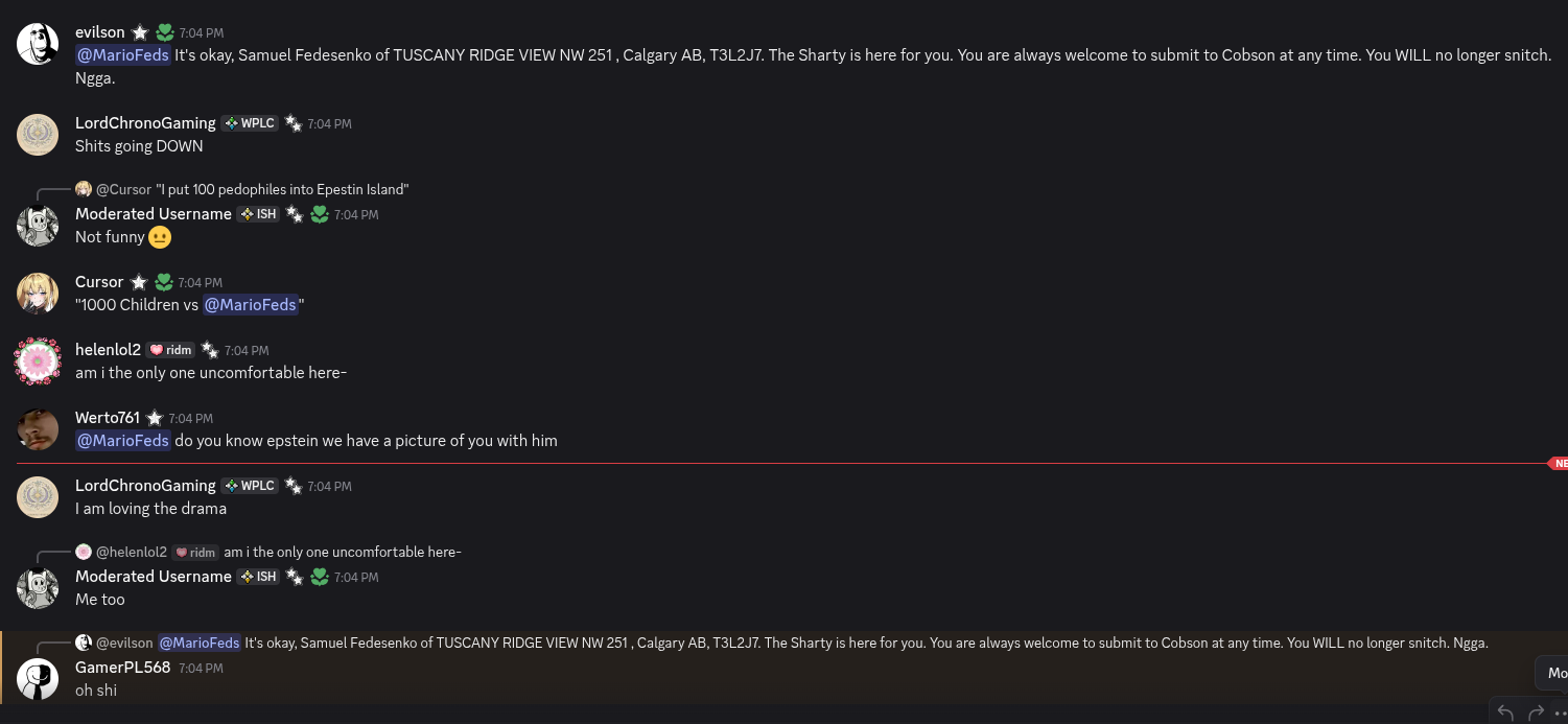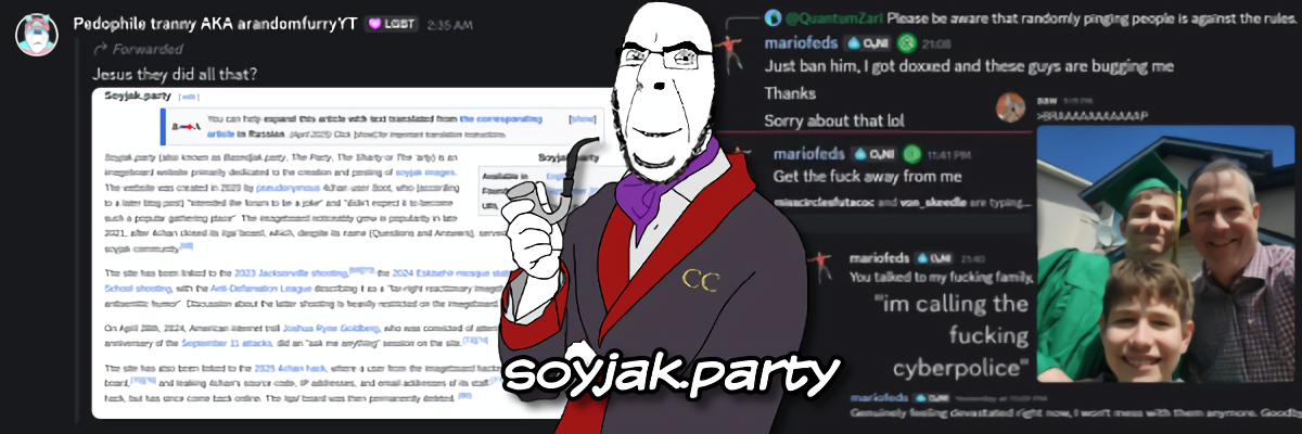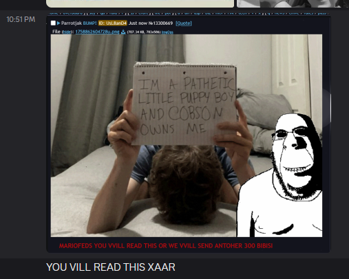 >>164285basically giant seething nigger snitch got doxxed in 2 hours because xe is retarded and people sent bibisea and za causing more leakage from xim and they also raided xer cord and called xim a pedo in it in an attempt to get xim 'nished.