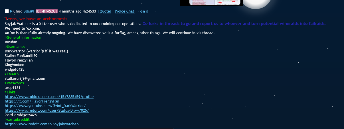 >>162549Long-time snitch who has been obsessing over us for like a year atp