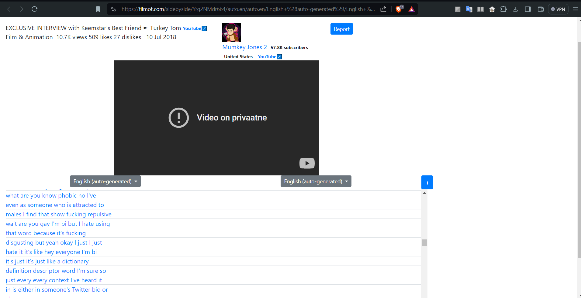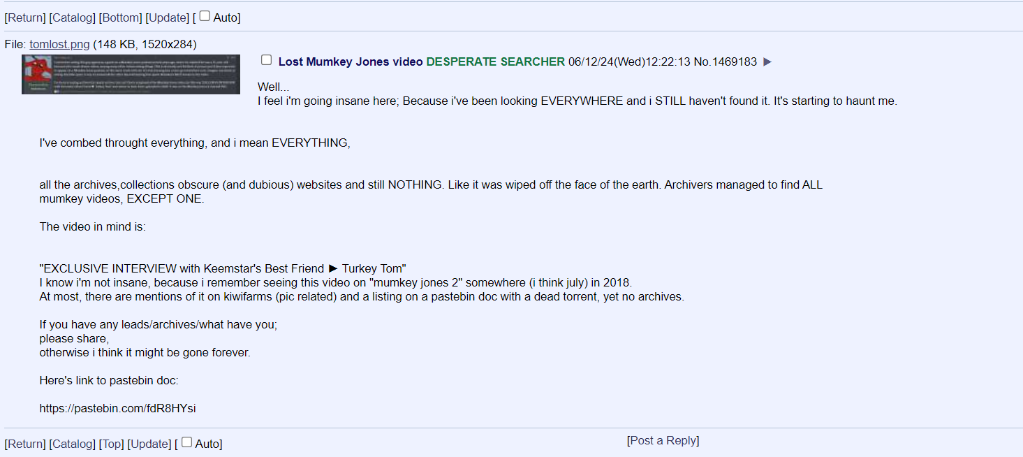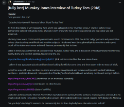 >>77585Are you sure it was a Mumkey Jones video and not from their State of the YouTube podcast? They has Turkey Tom on as a guest.