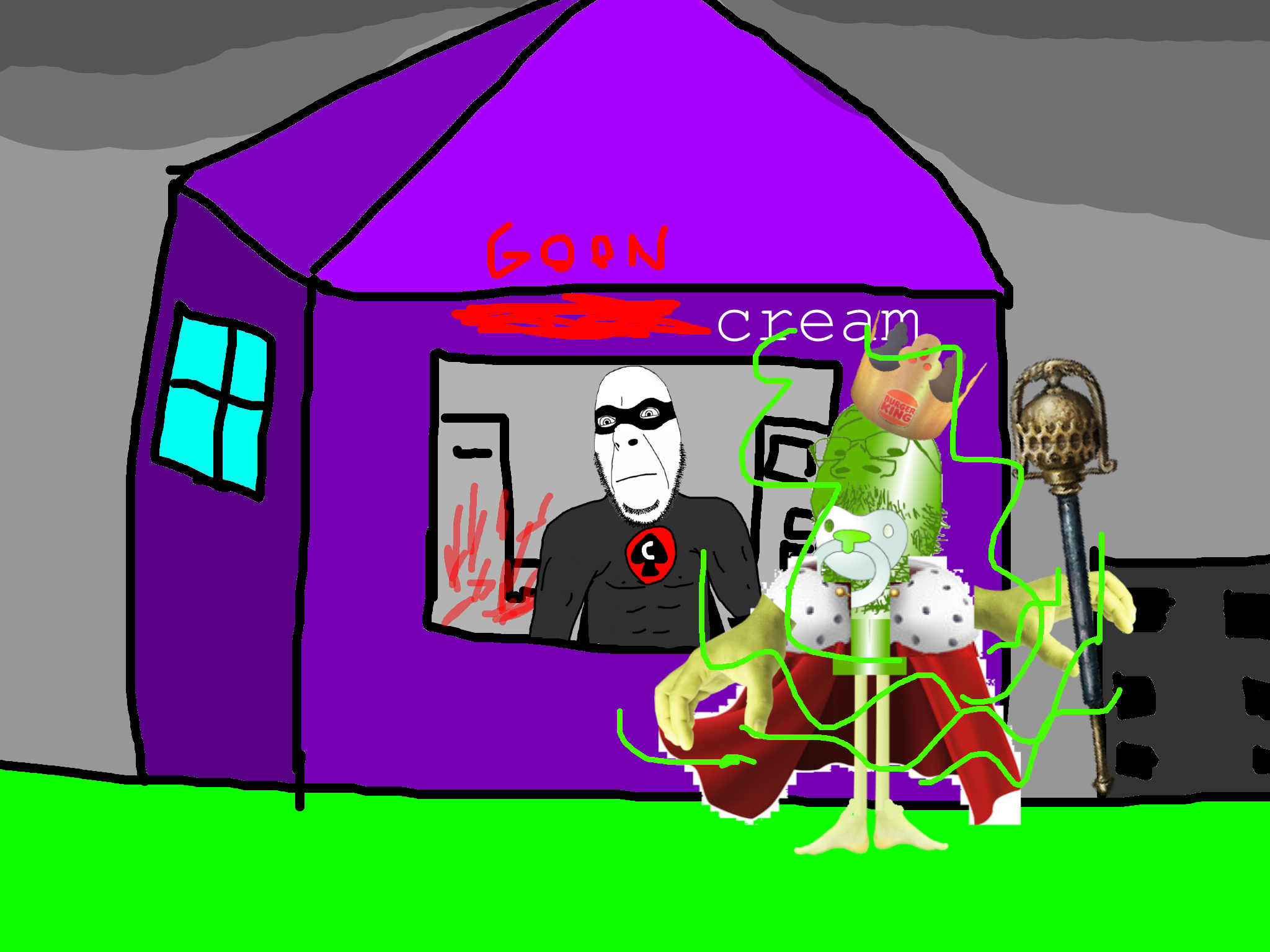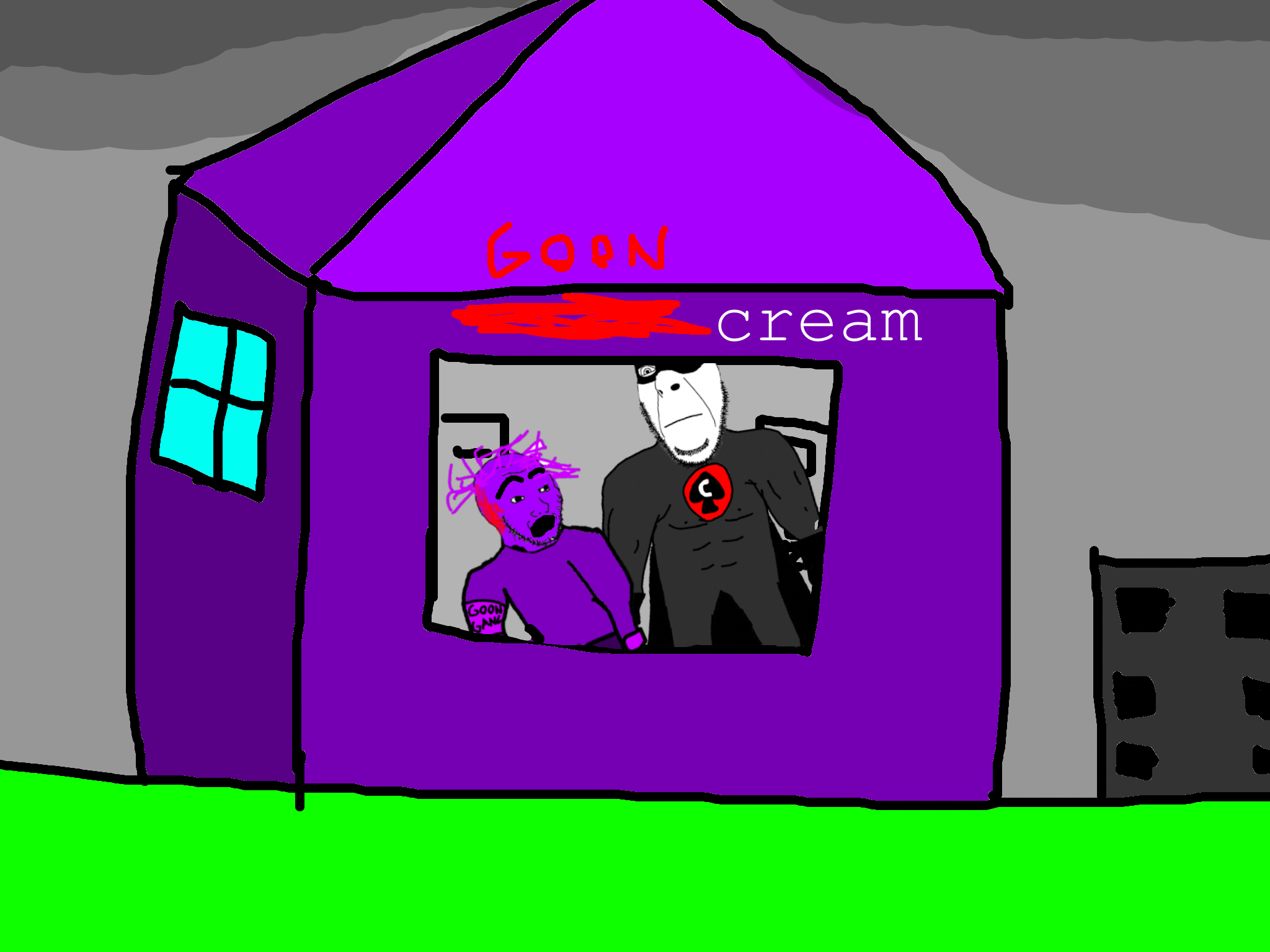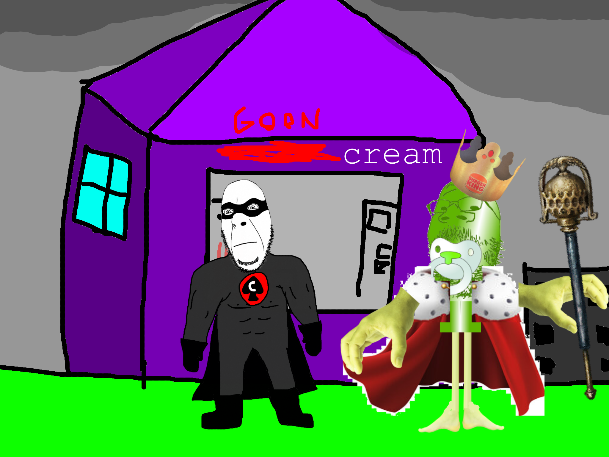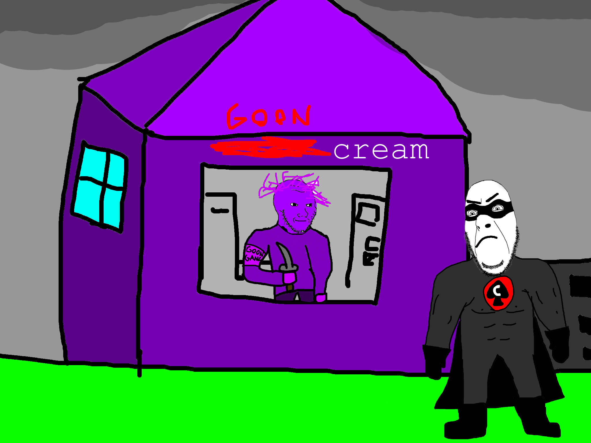and in the ice cream store he sees a gooner who took over the ice cream store and turned it into a goon cave and cobman liberates it