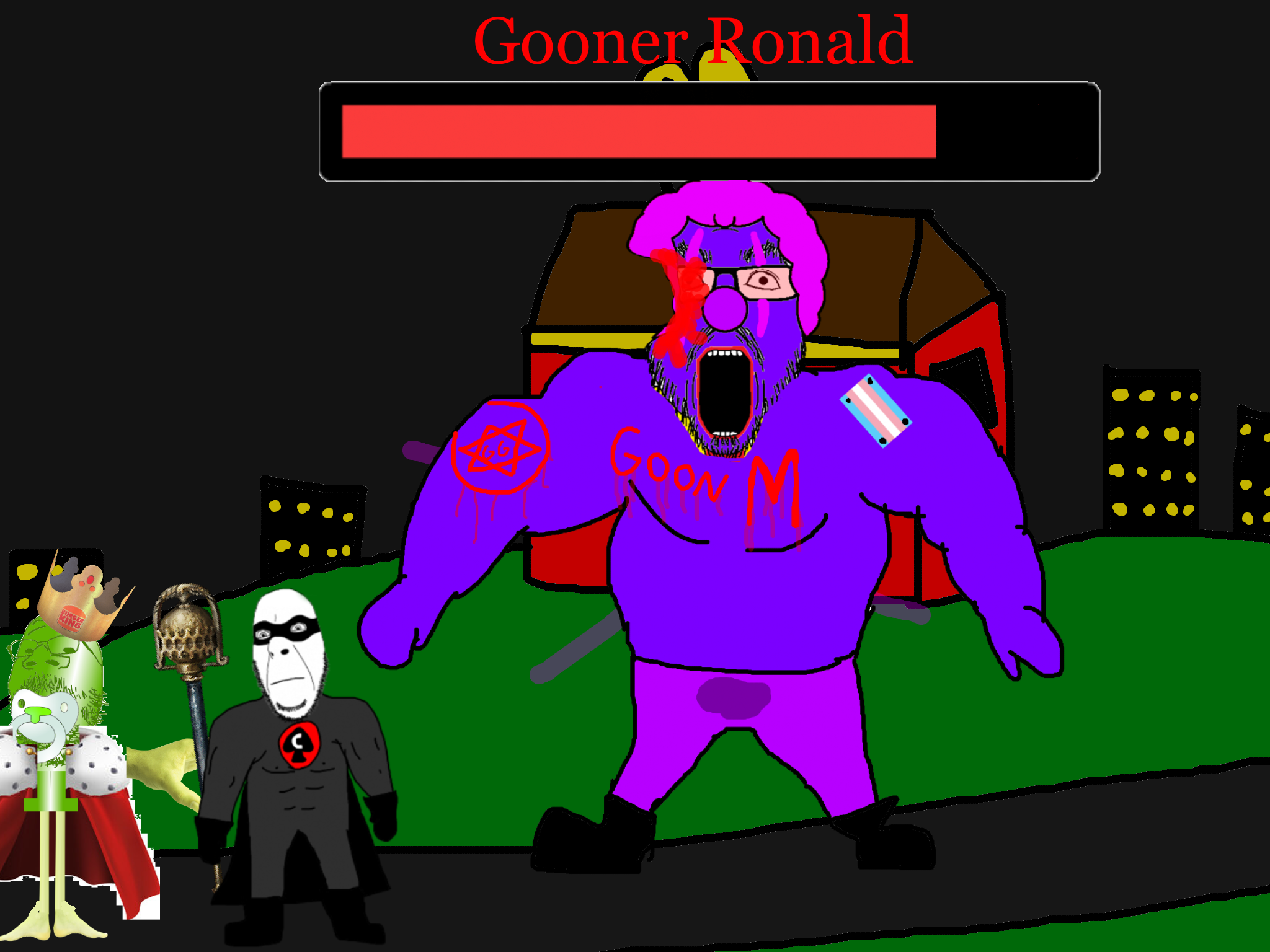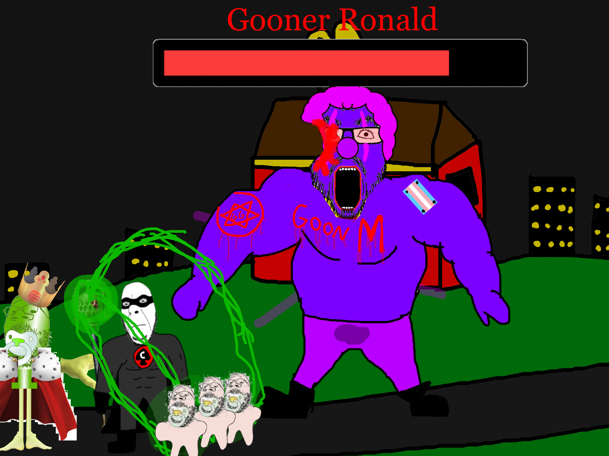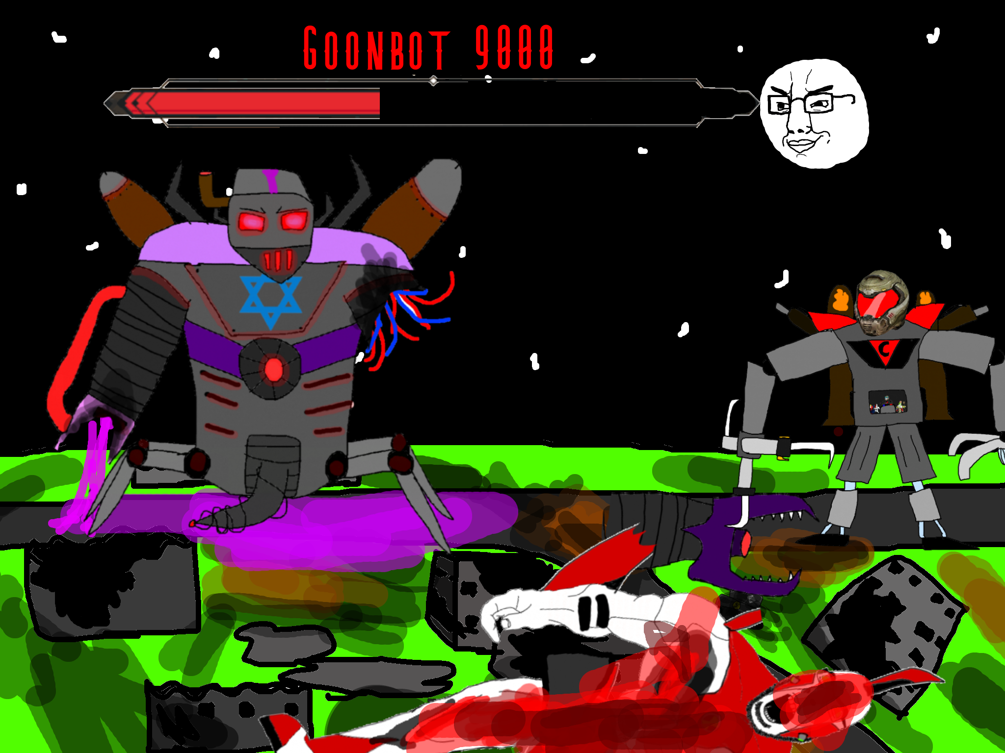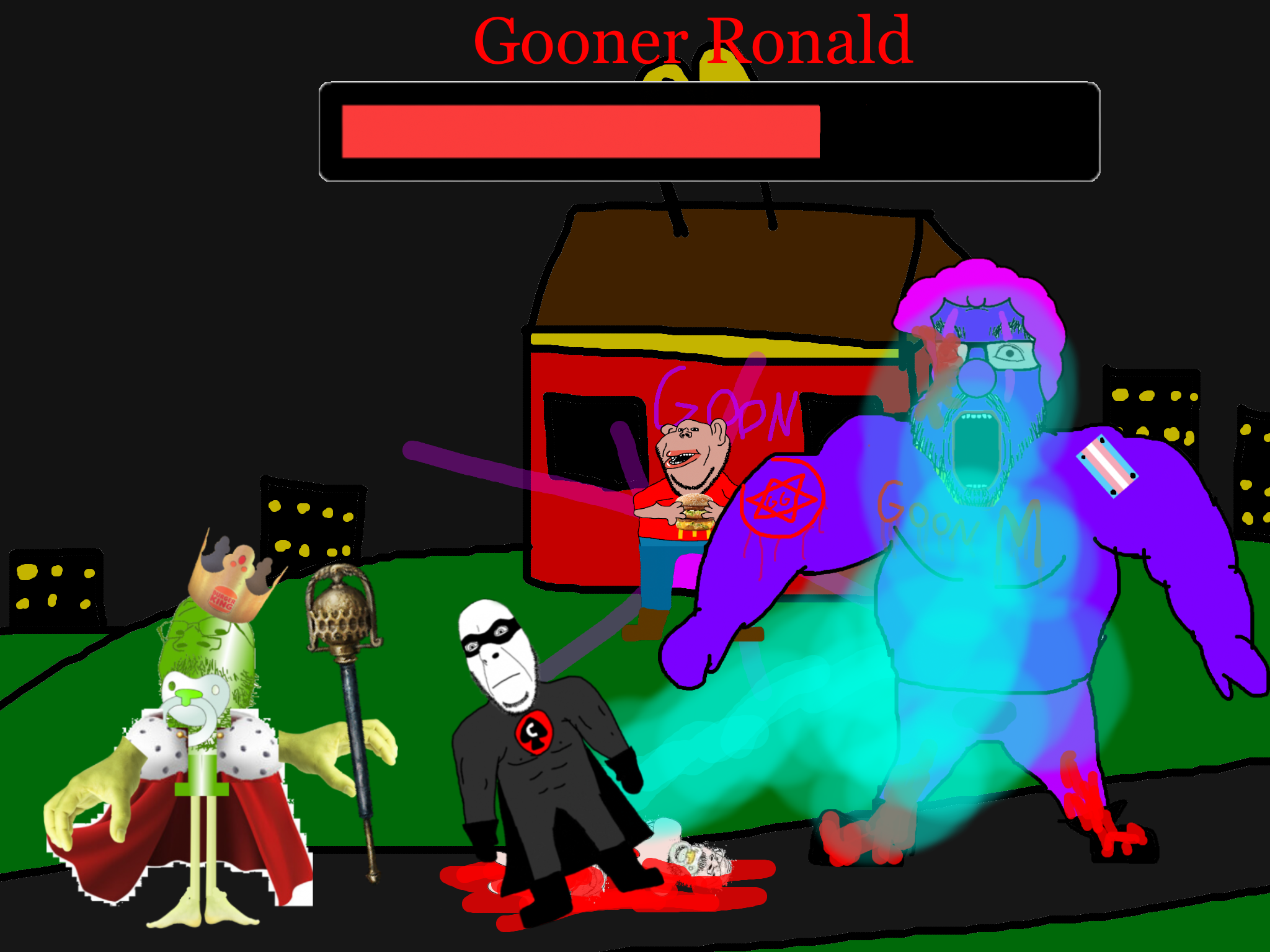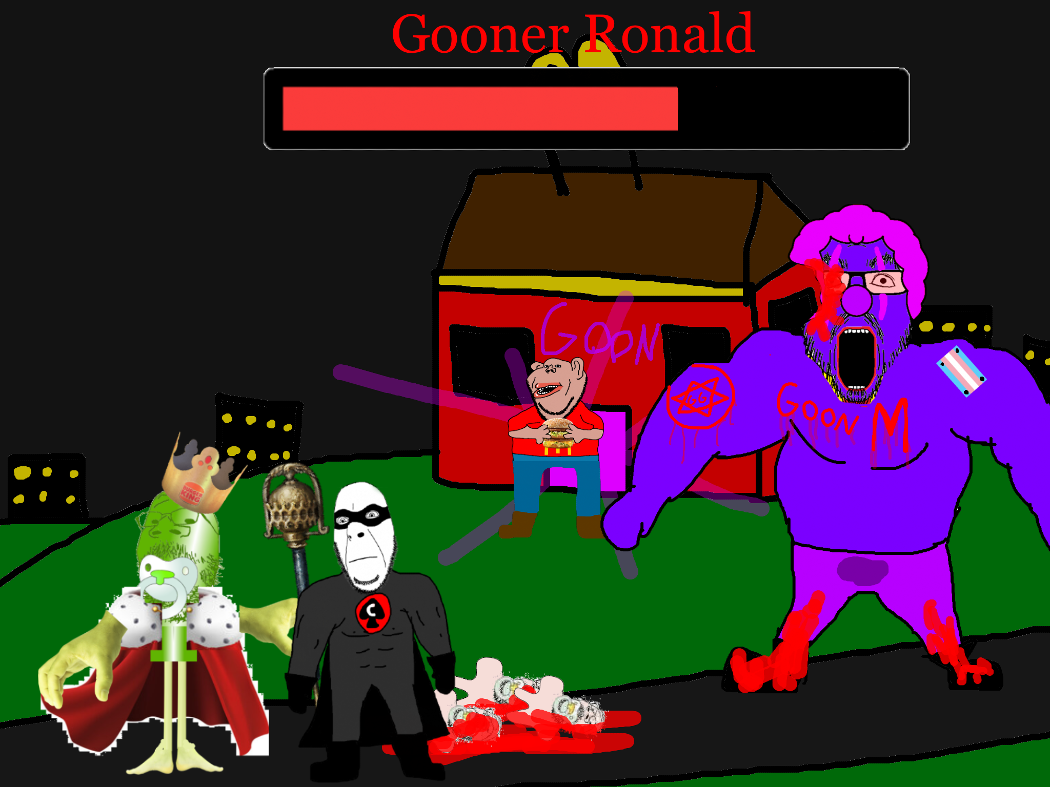 >>89938Goonclown returns to this dimension powered up by the goon cult, fuses with Goonbot, and starts phase 2 of the final boss battle.