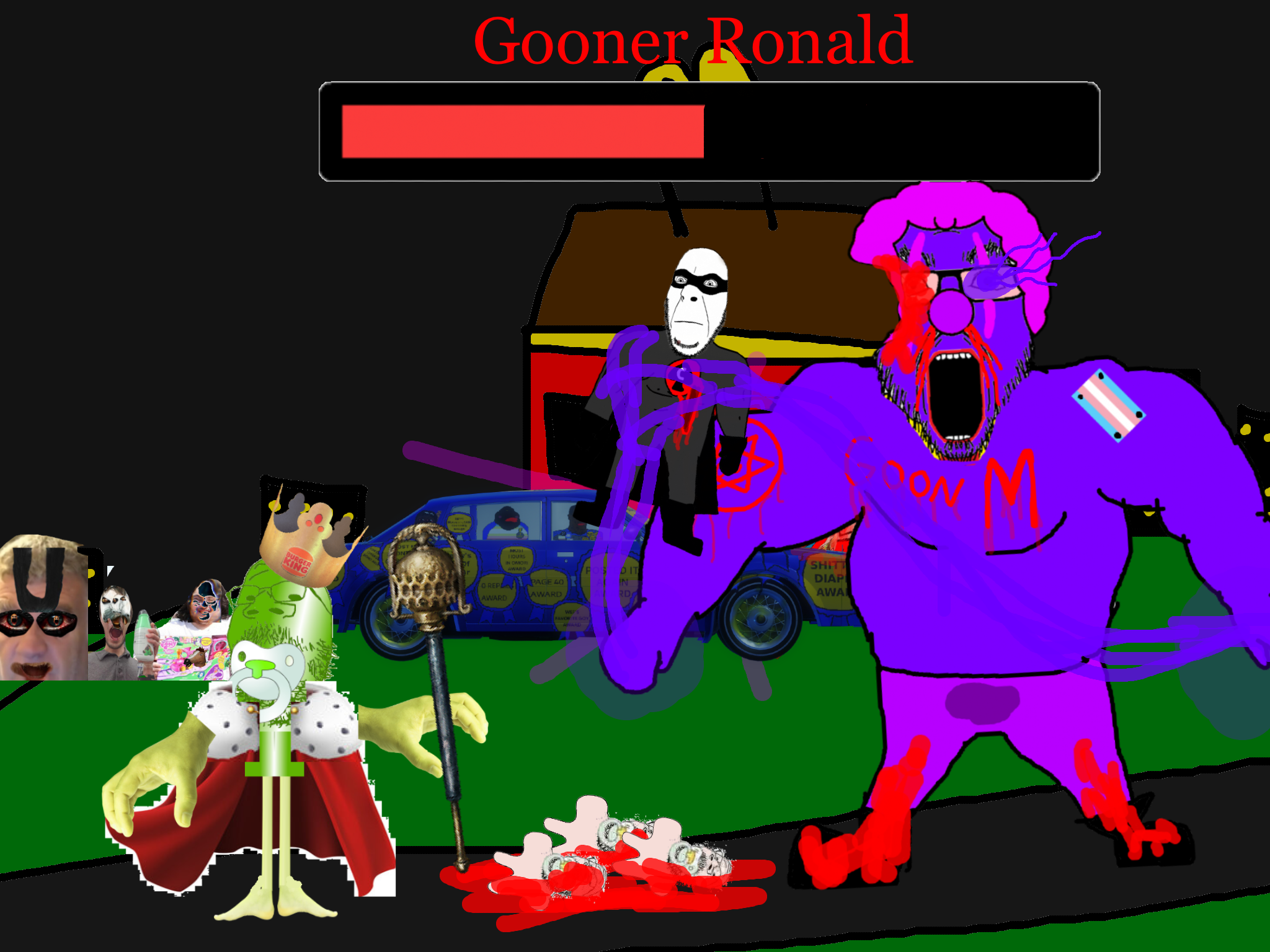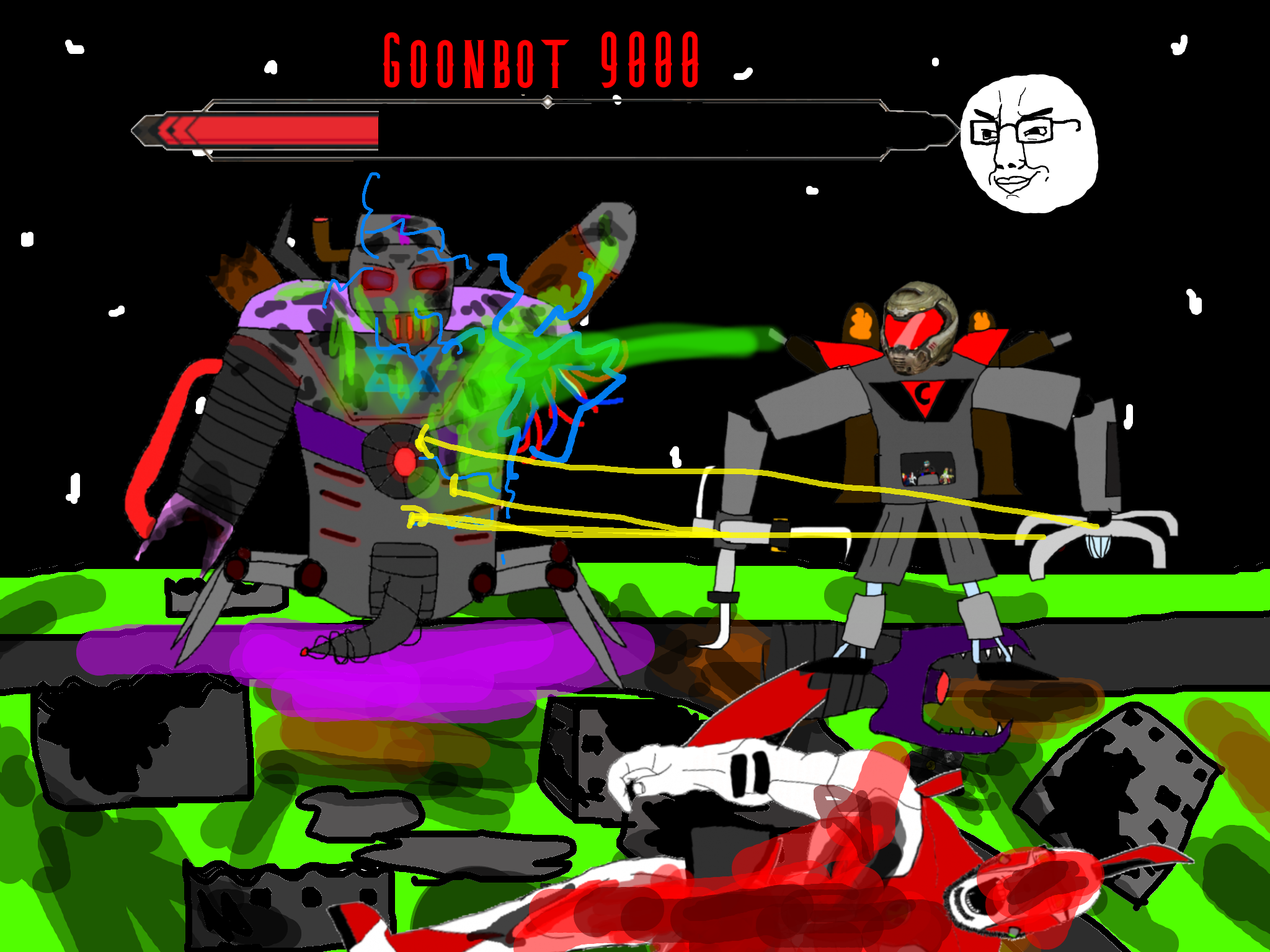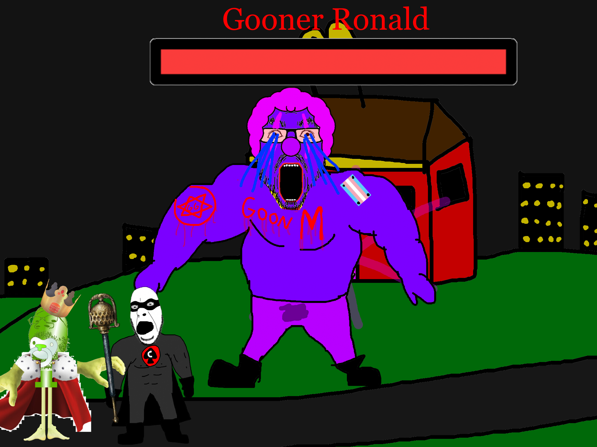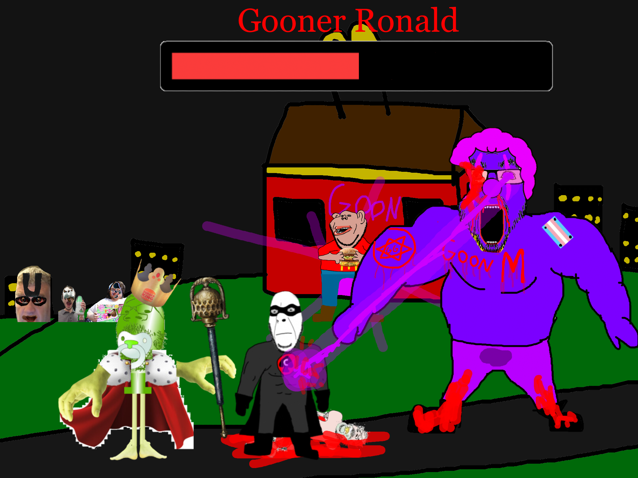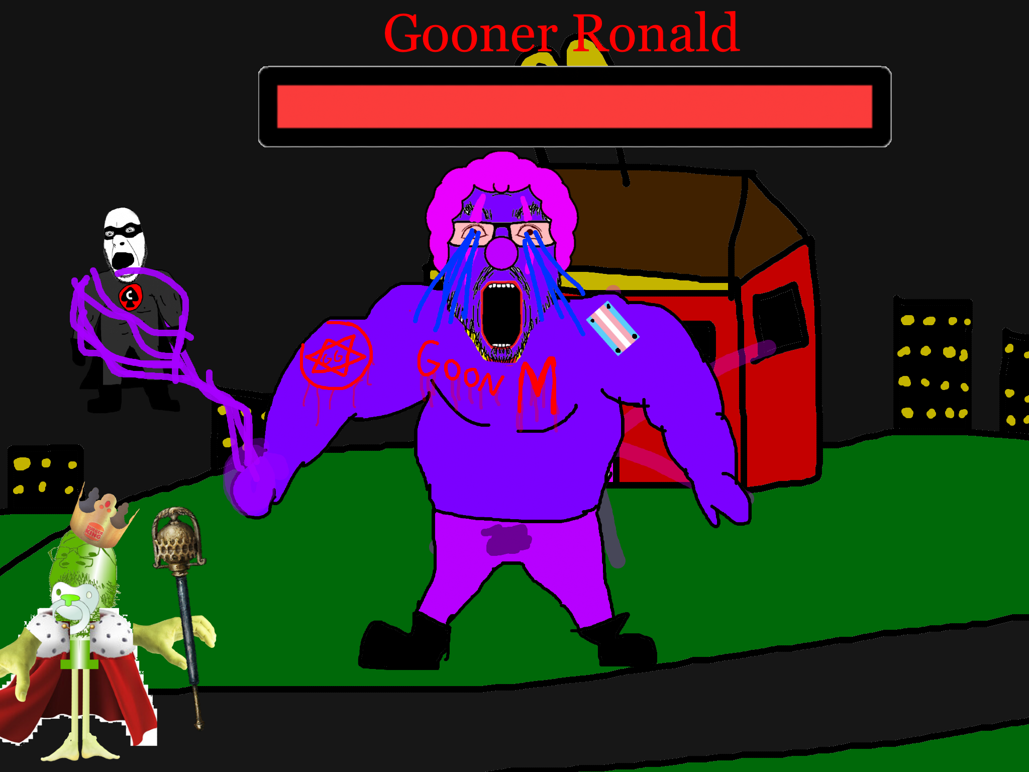 >>89938Goonclown returns to this dimension powered up by the goon cult, fuses with Goonbot, and starts phase 2 of the final boss battle.