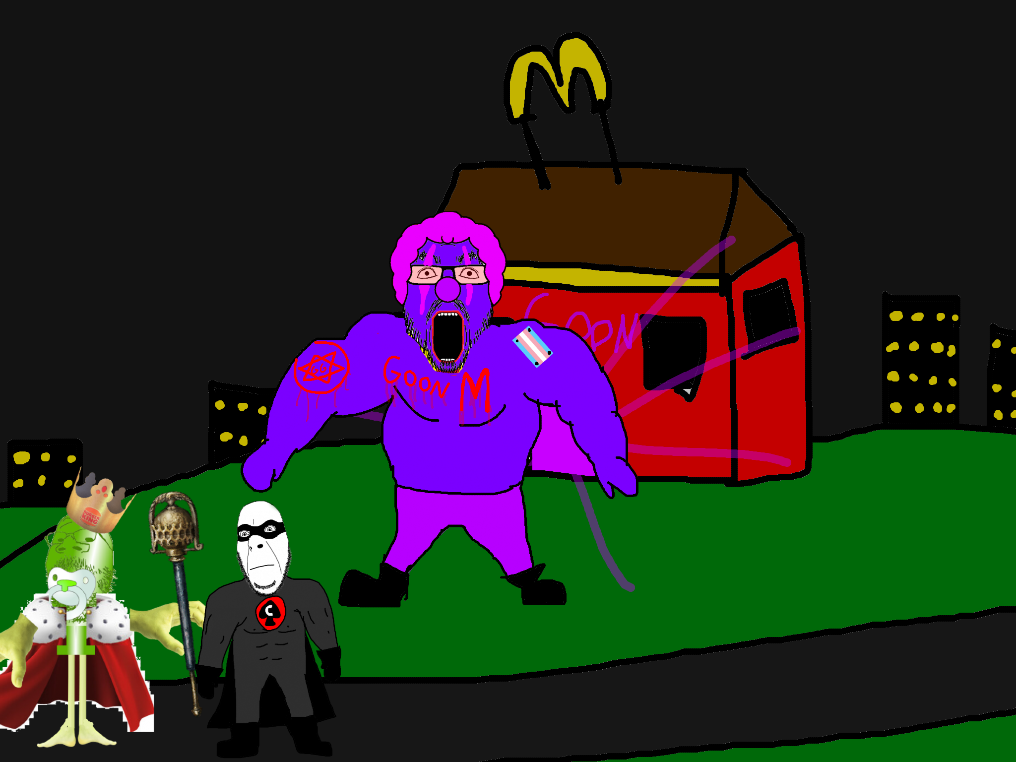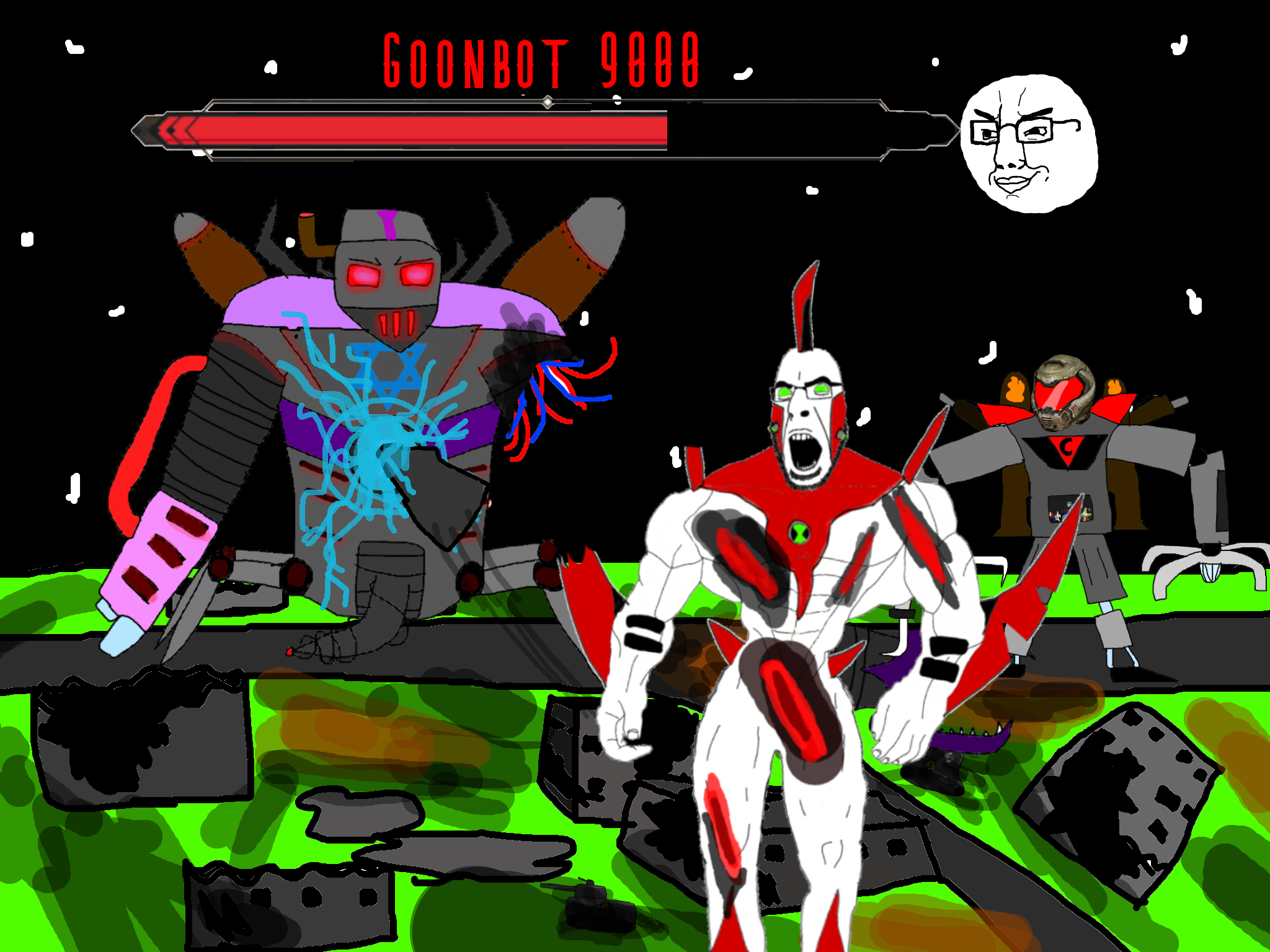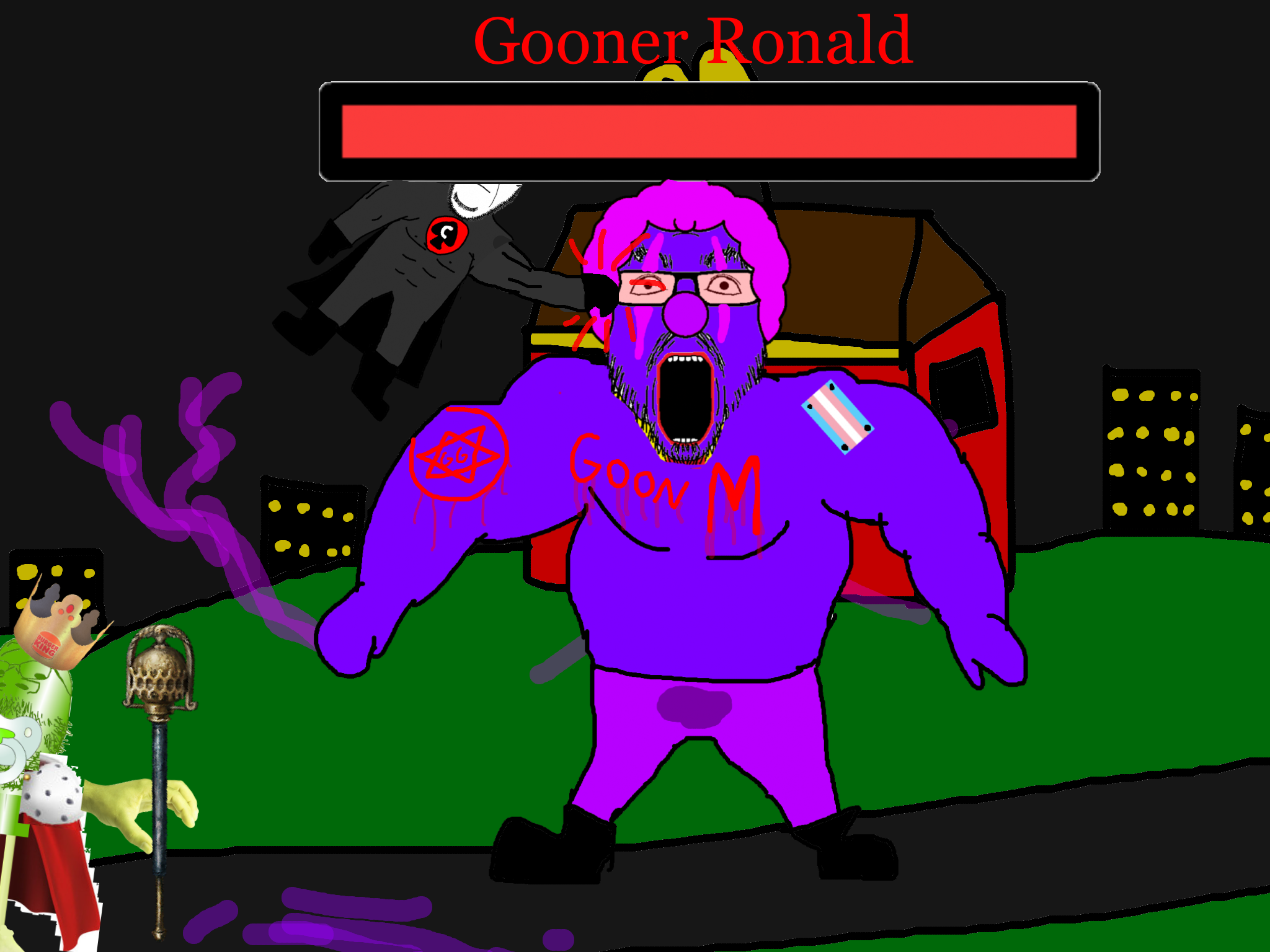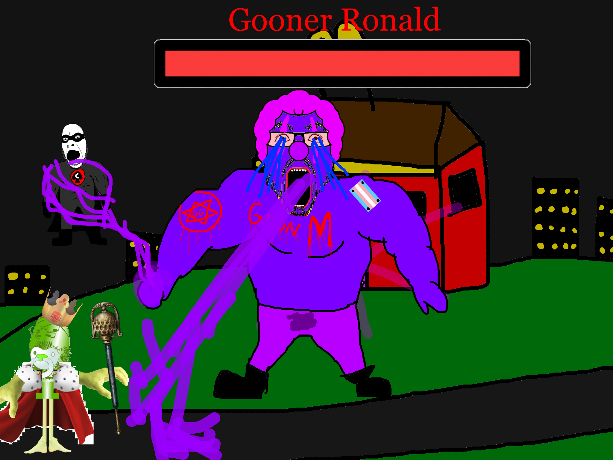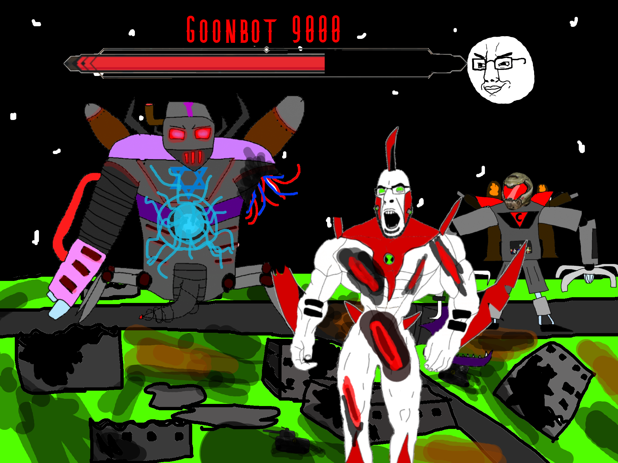 >>89938Goonclown returns to this dimension powered up by the goon cult, fuses with Goonbot, and starts phase 2 of the final boss battle.