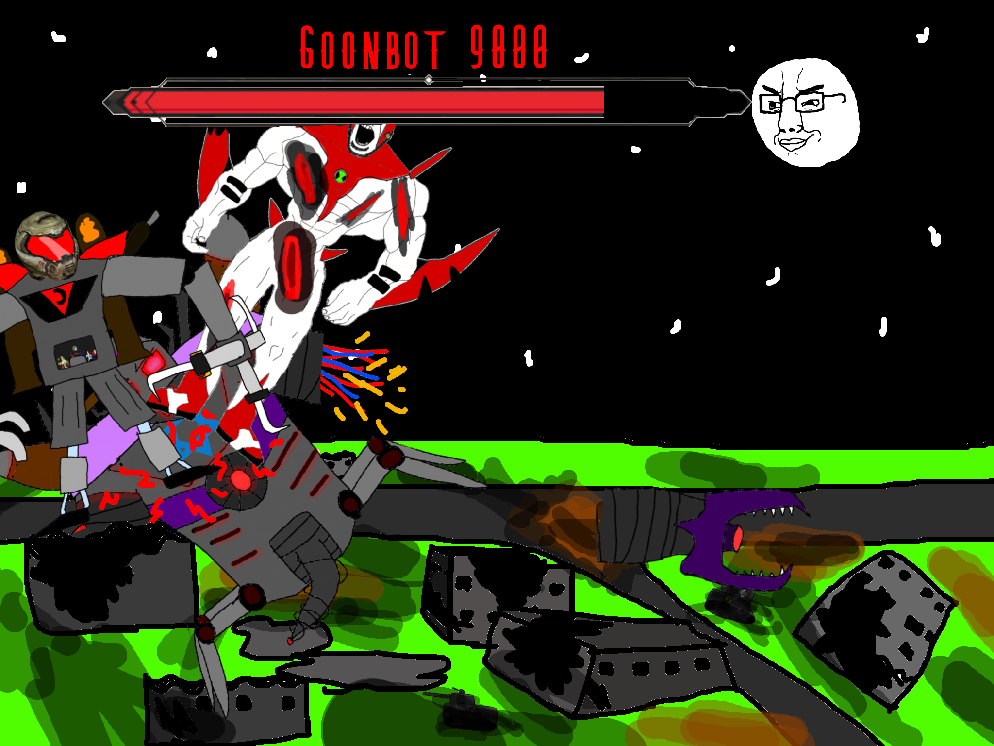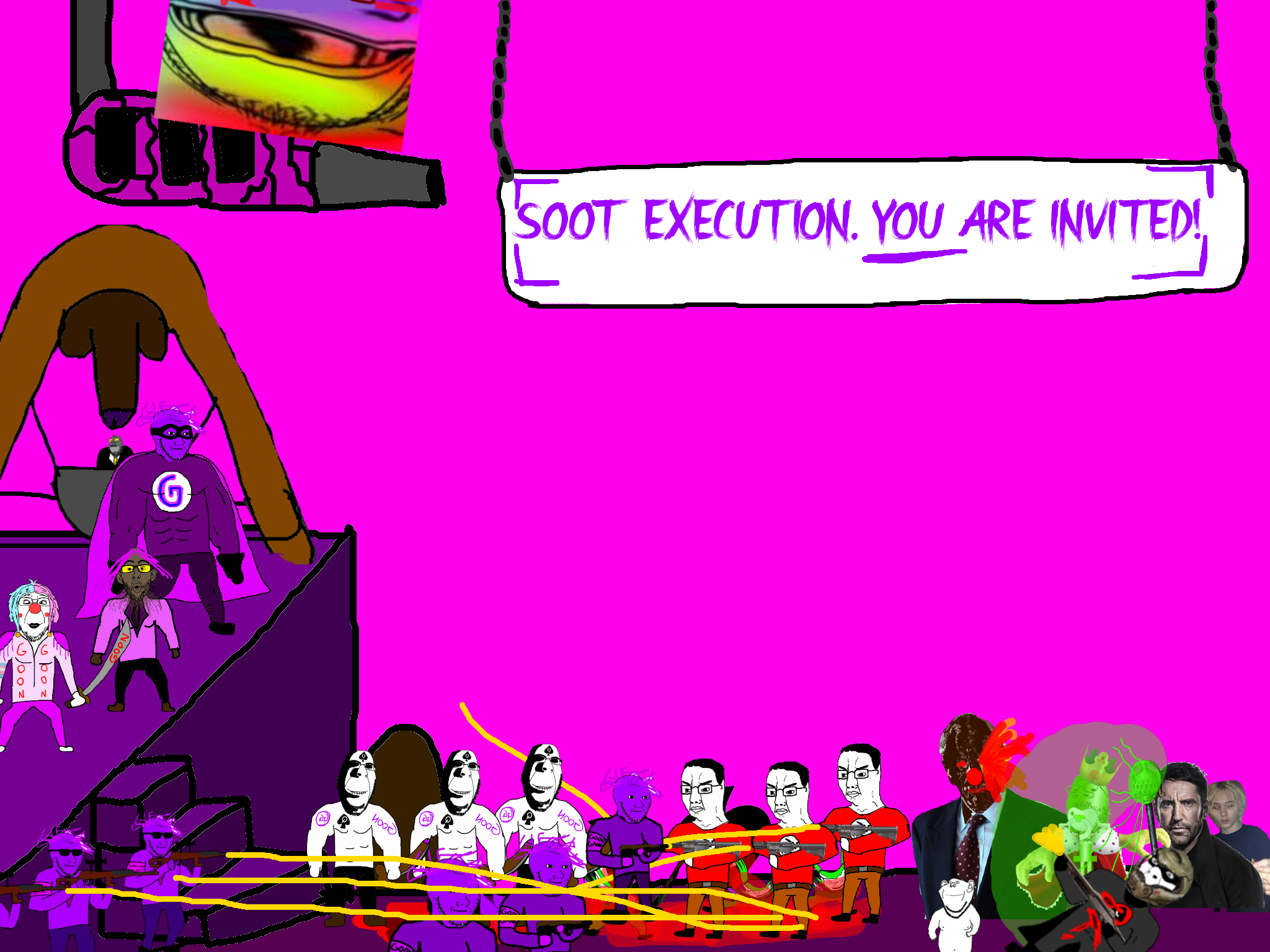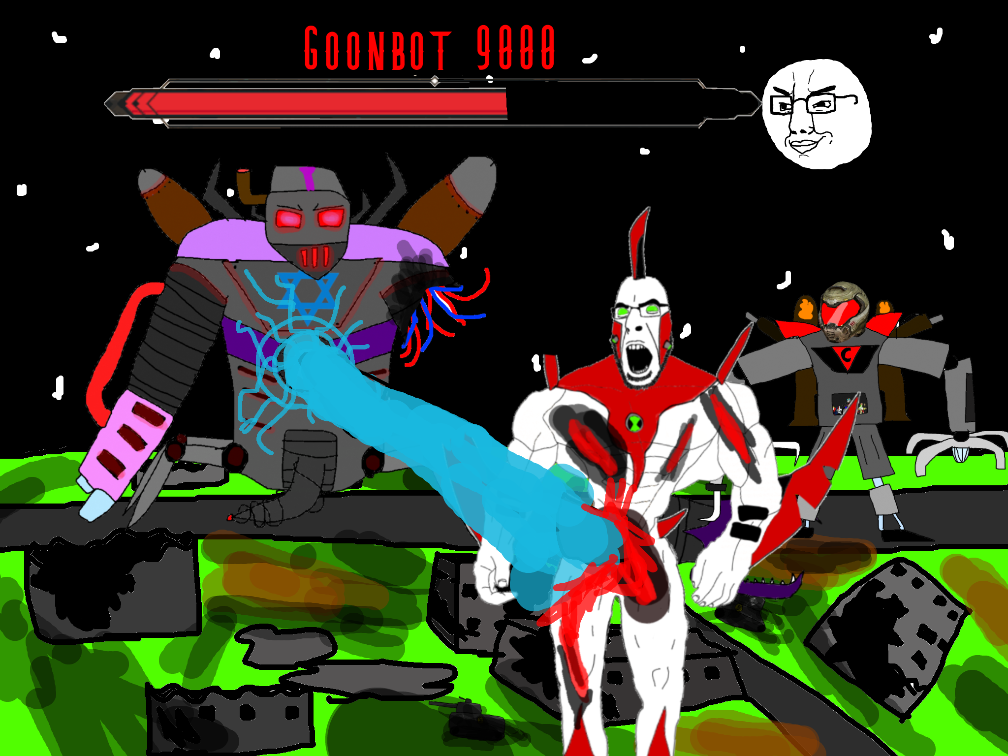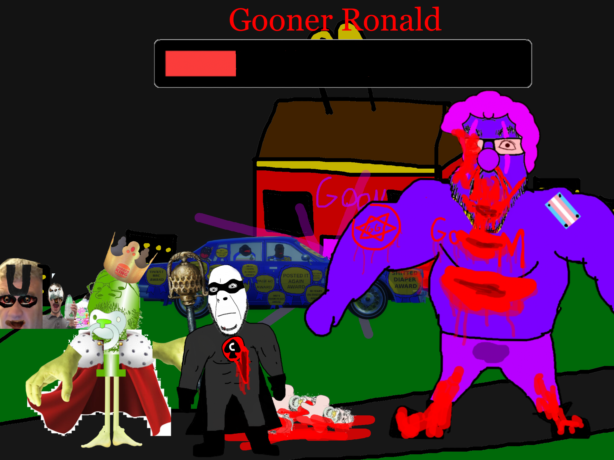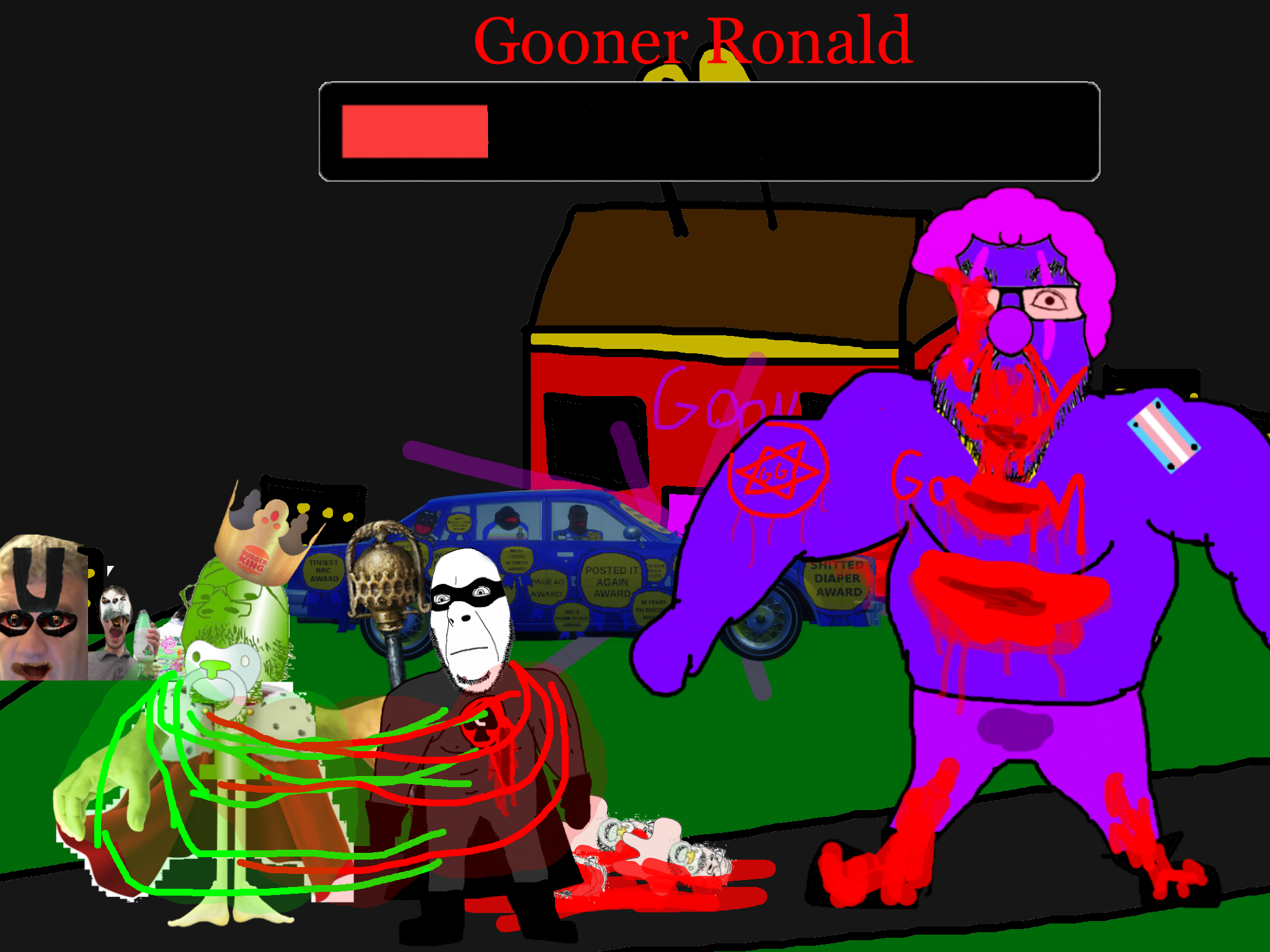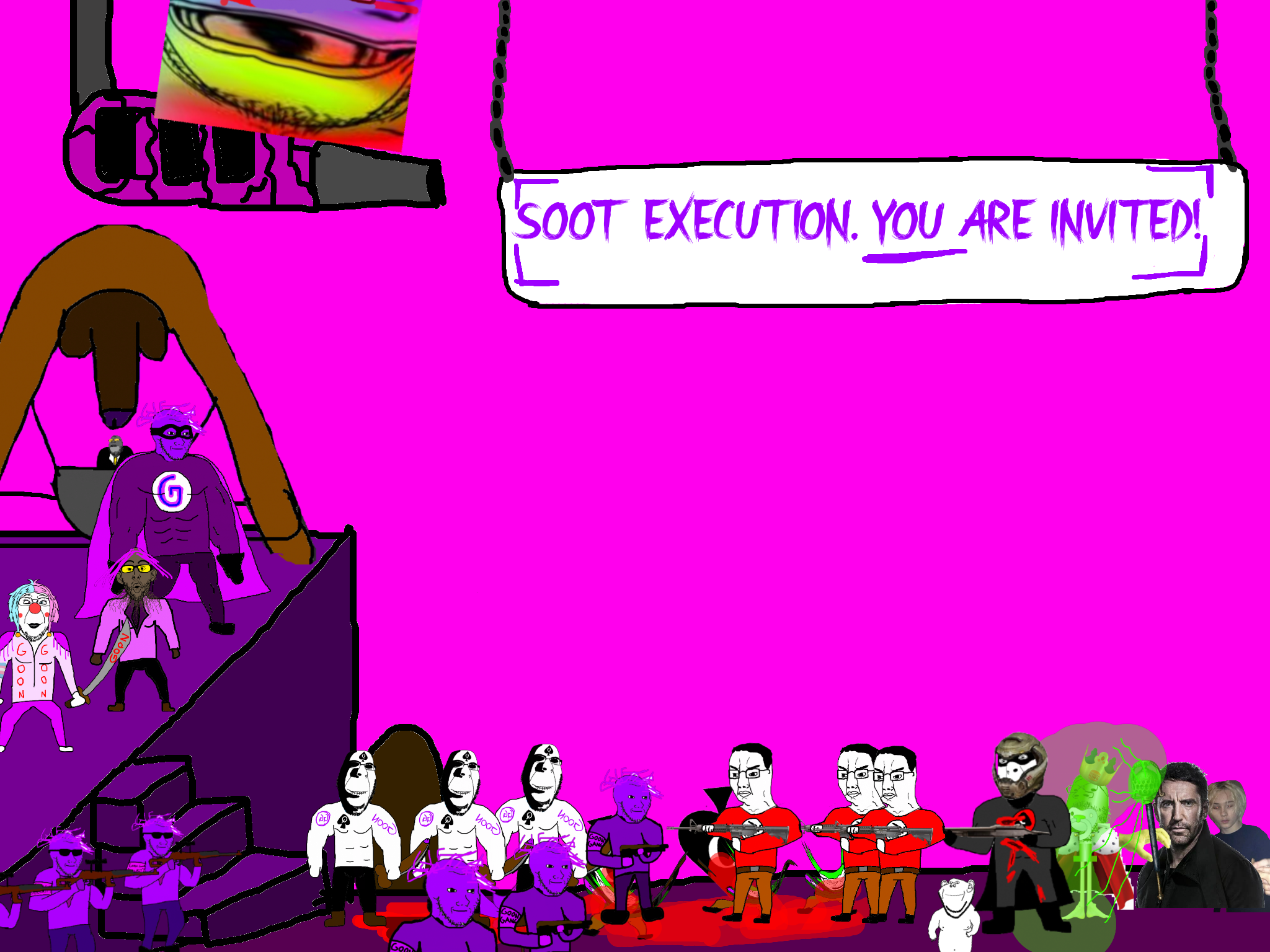 >>89938Goonclown returns to this dimension powered up by the goon cult, fuses with Goonbot, and starts phase 2 of the final boss battle.