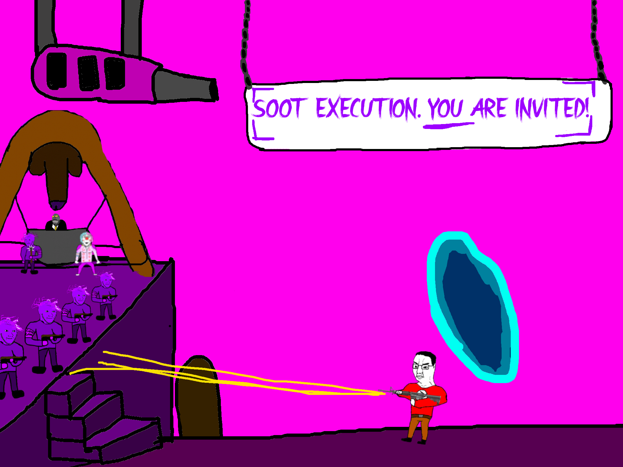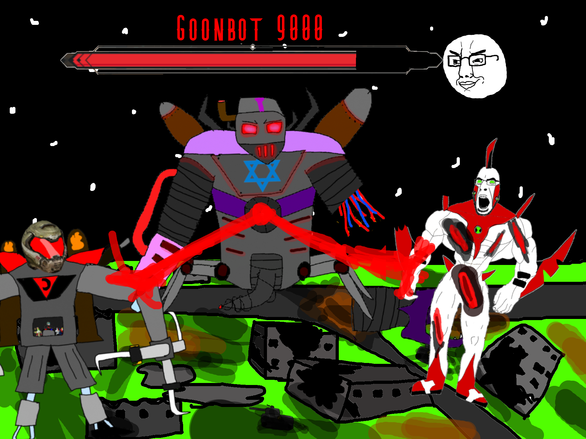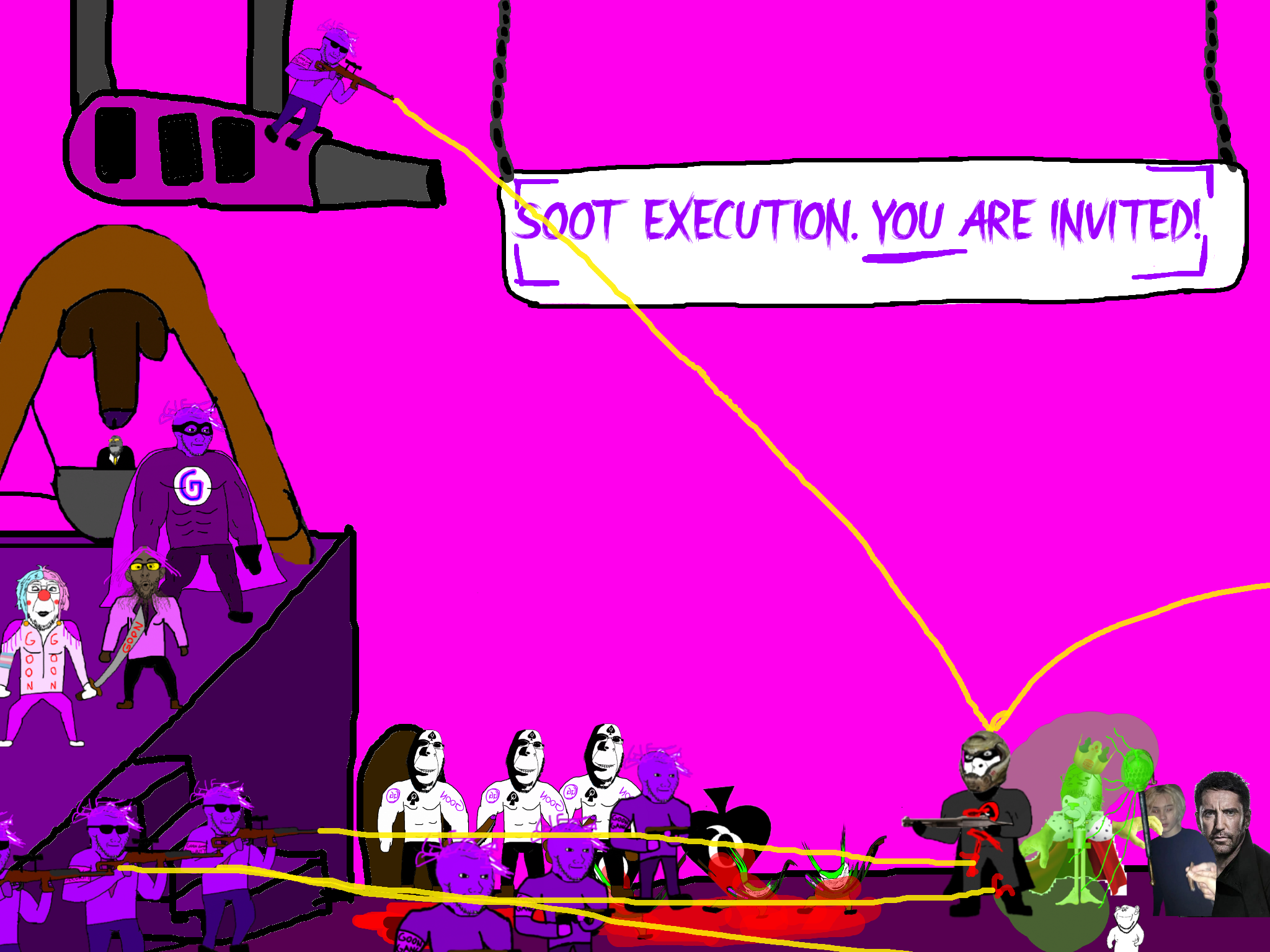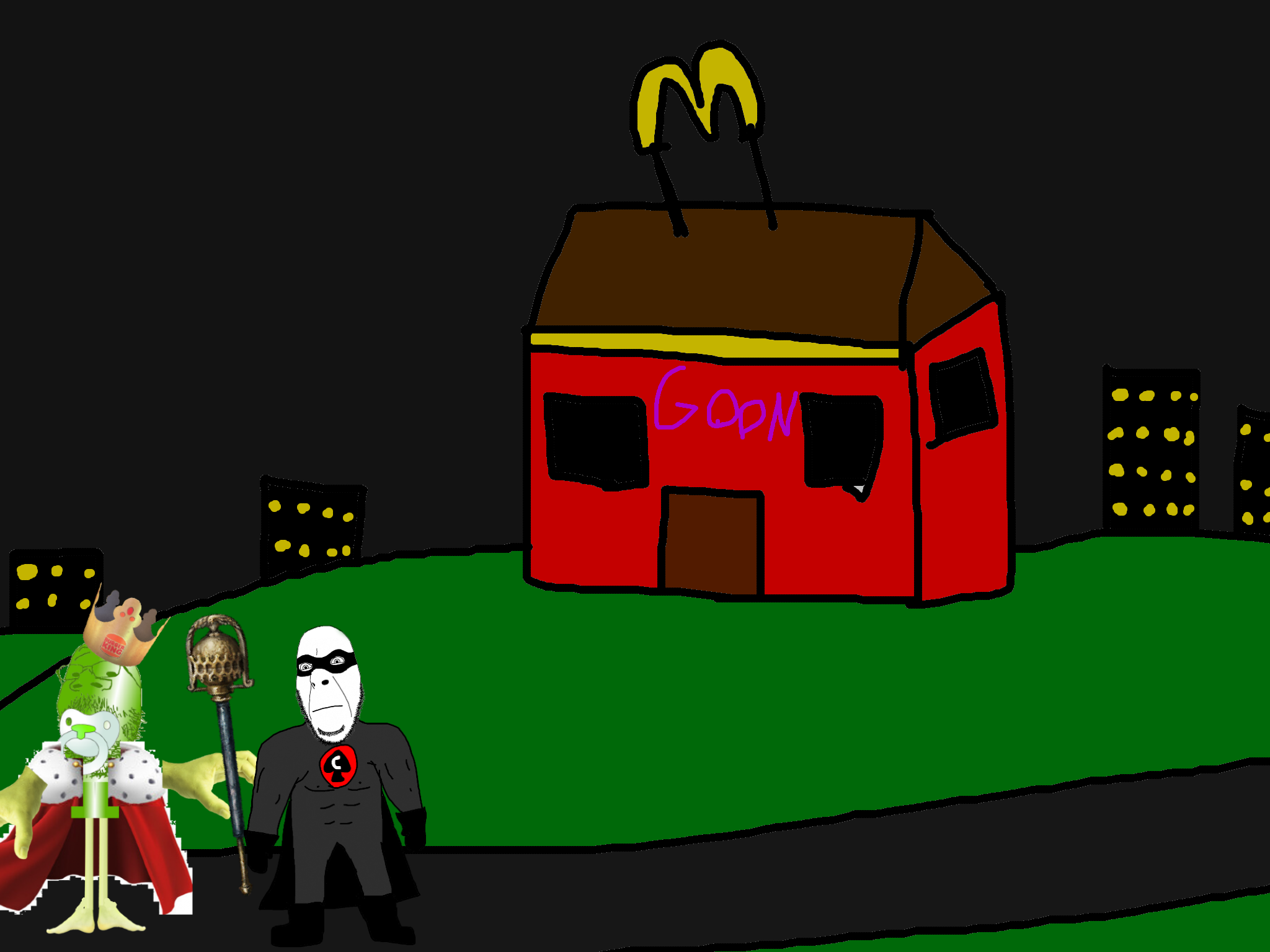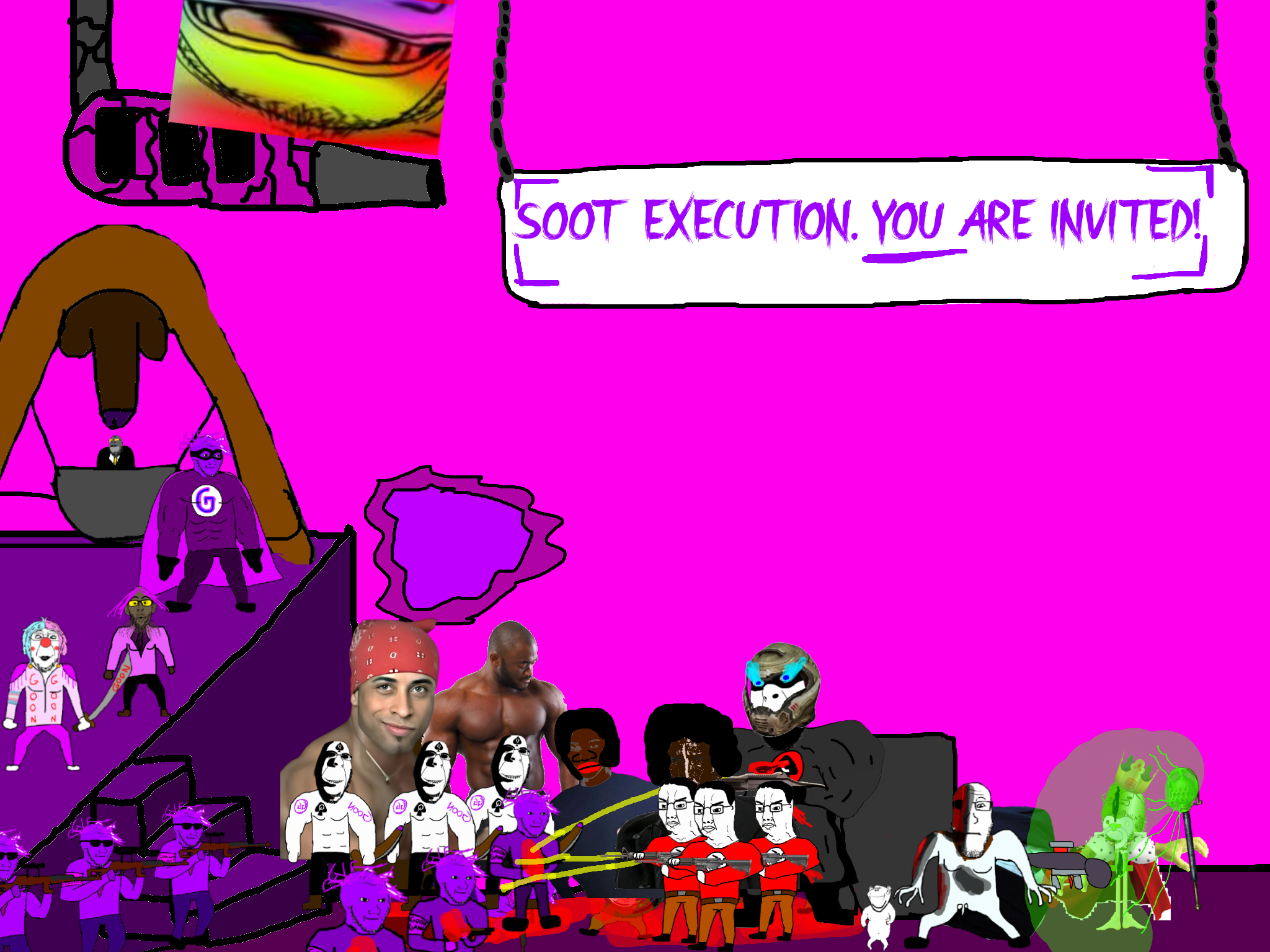 >>89938Goonclown returns to this dimension powered up by the goon cult, fuses with Goonbot, and starts phase 2 of the final boss battle.