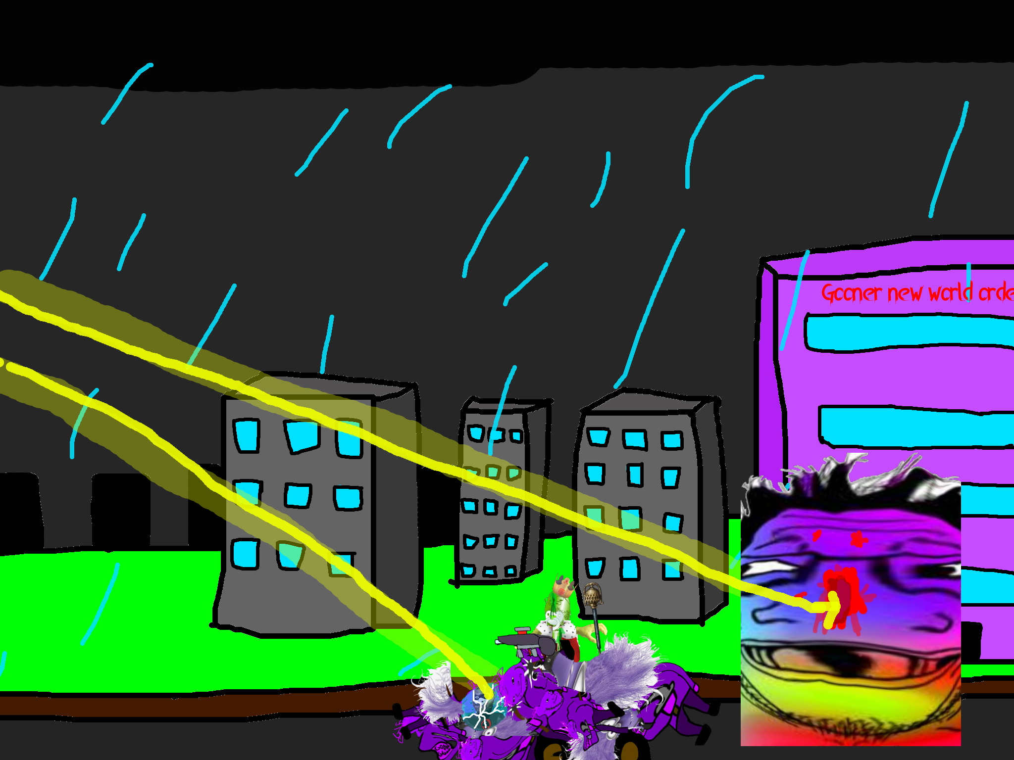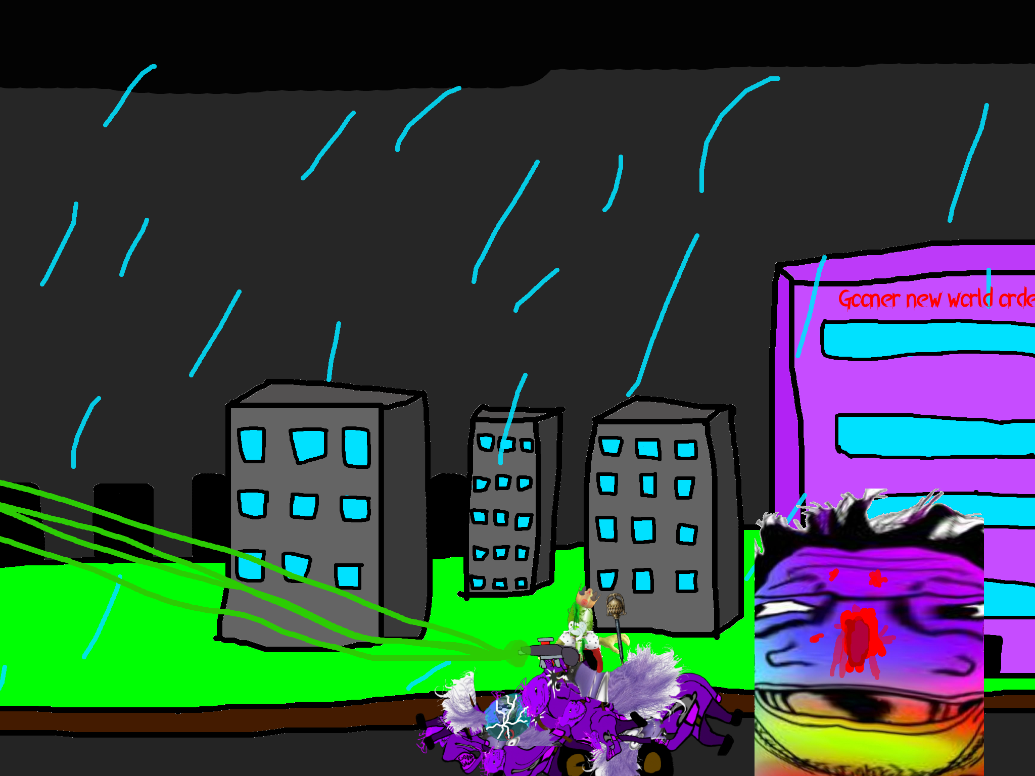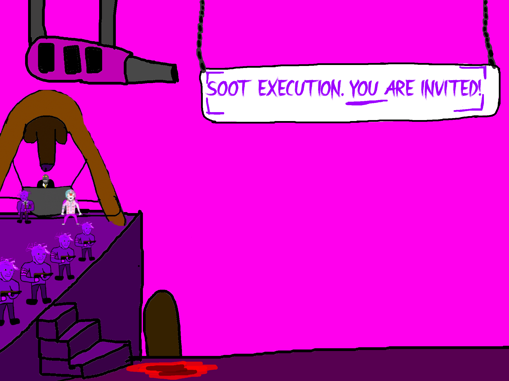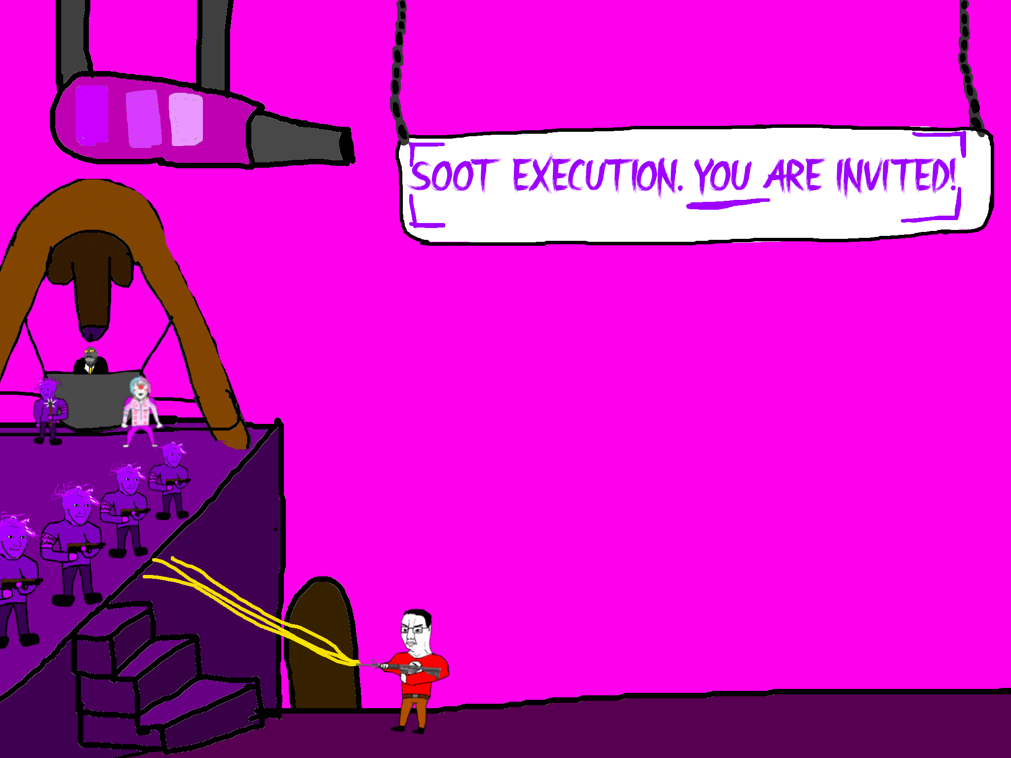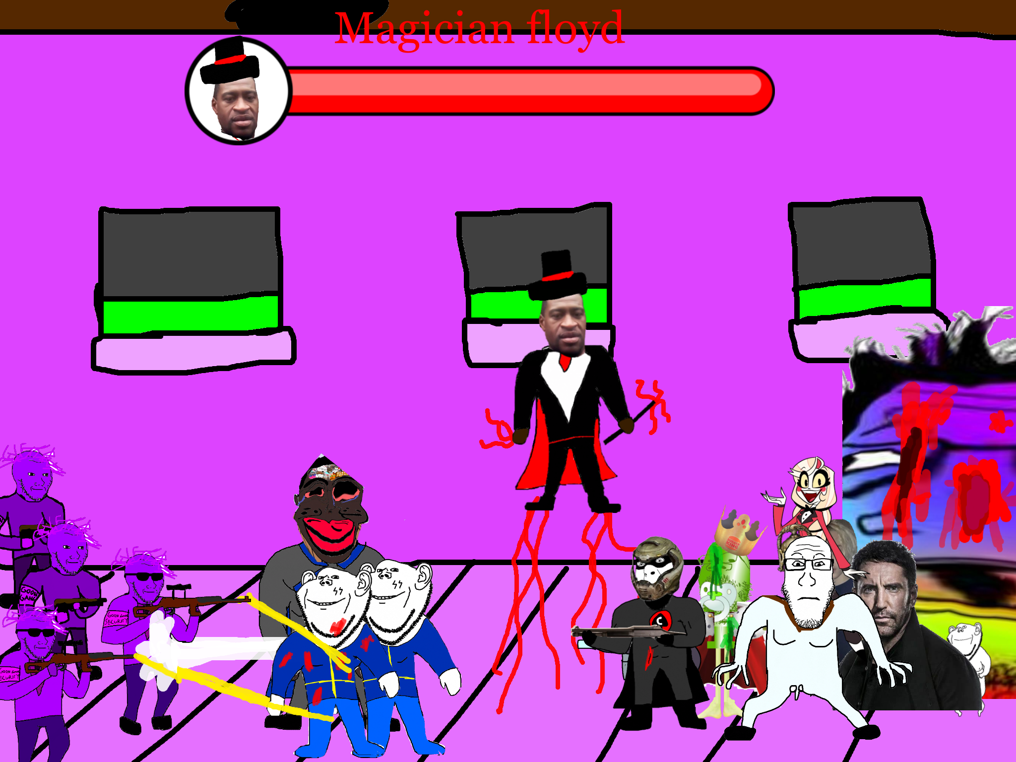 >>89938Goonclown returns to this dimension powered up by the goon cult, fuses with Goonbot, and starts phase 2 of the final boss battle.