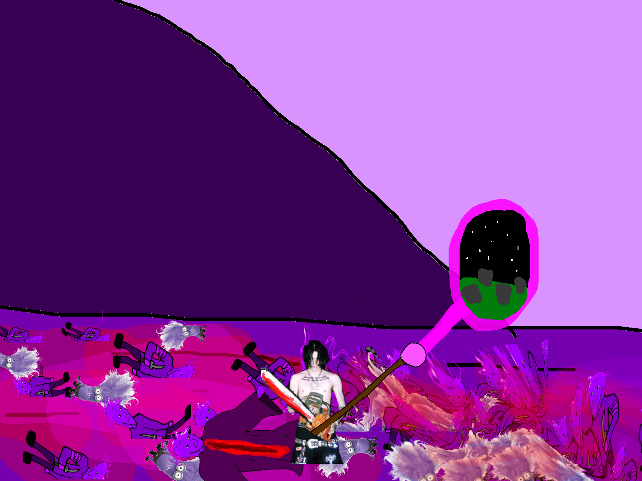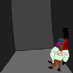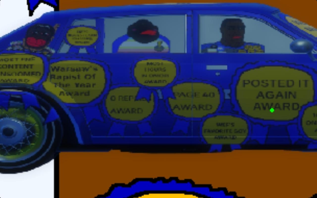 Once you get there you find that it has been repainted in gooner colors. A gooner with a knife pops out his head.