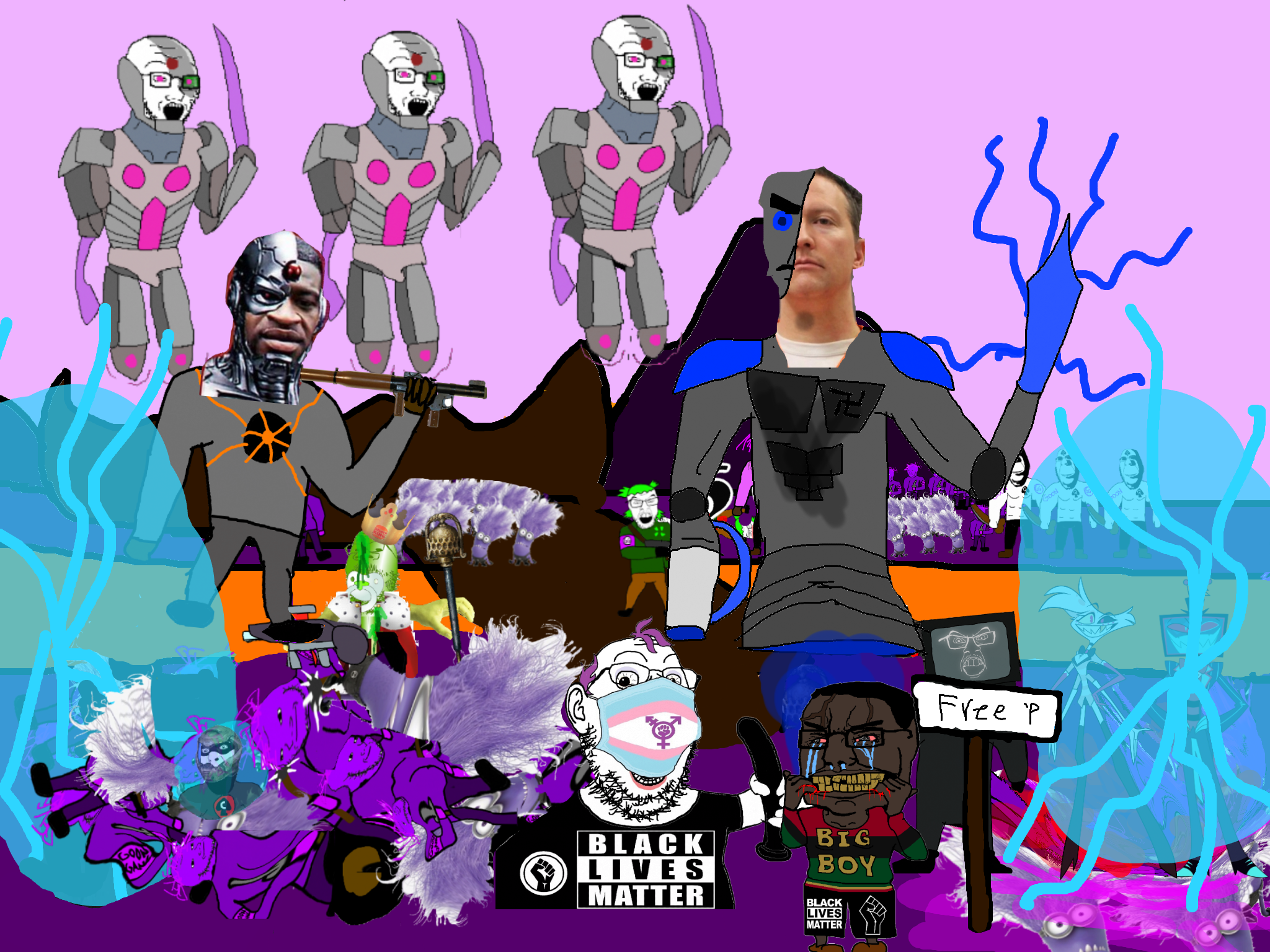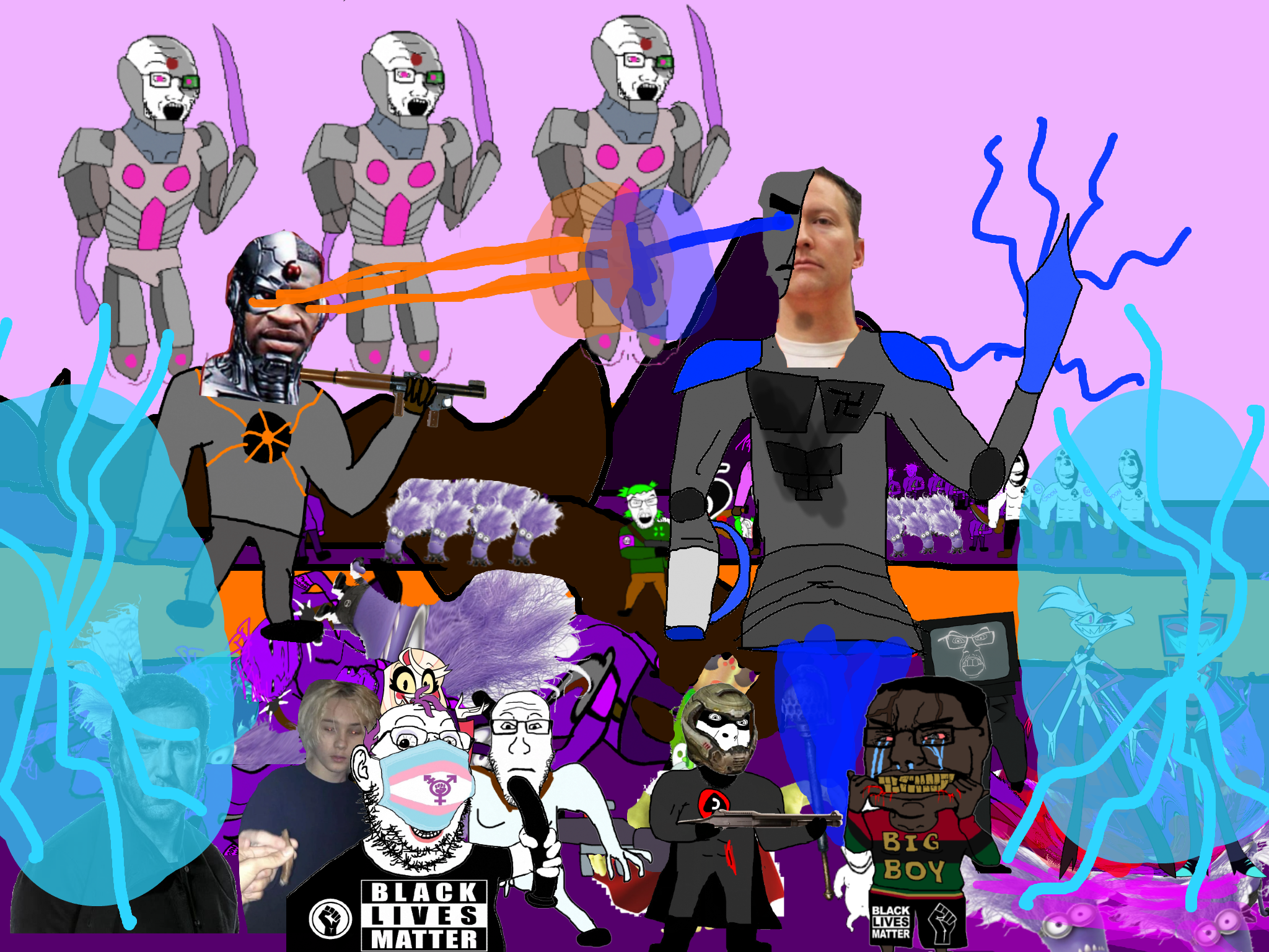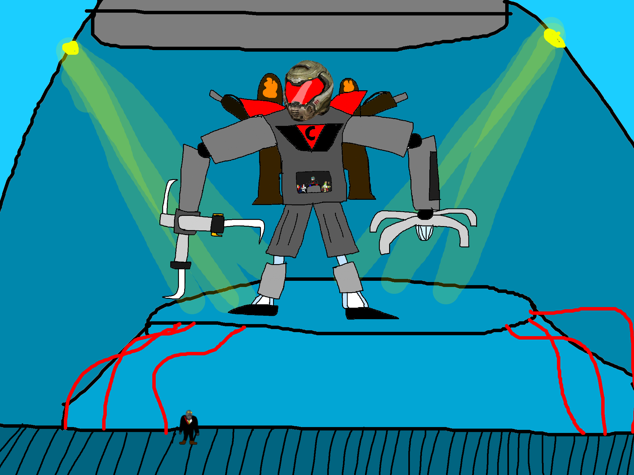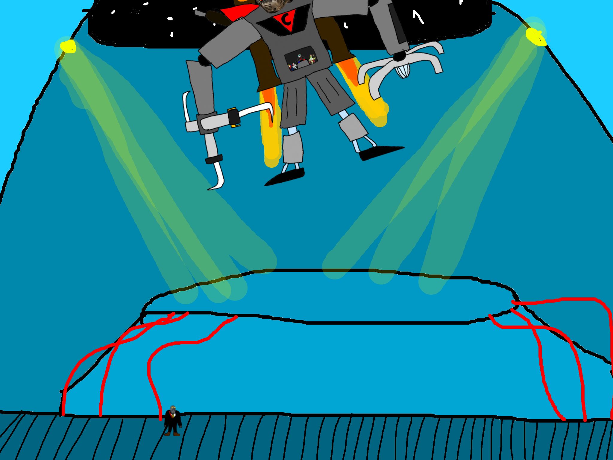 >>89922cyborg babyjak who was hiding under the rubble the whole time sees this climbs up the goonbot untill he is near the red chest core, cyborg babyjak initiates his own self destruction sequence and bombs himself his while his last words being "/caca/ won" before dying in a huge explosion that damages the goonbot's red chest spot