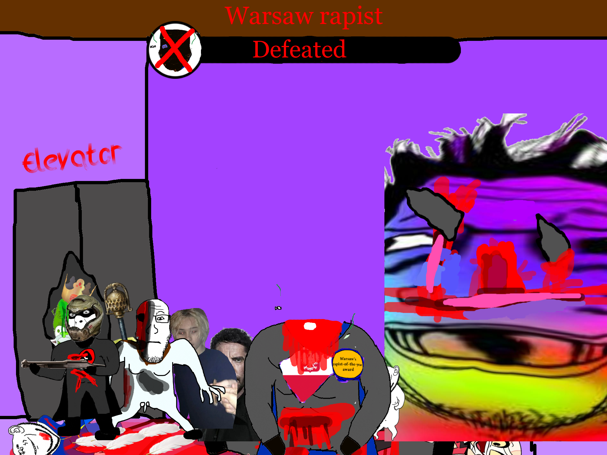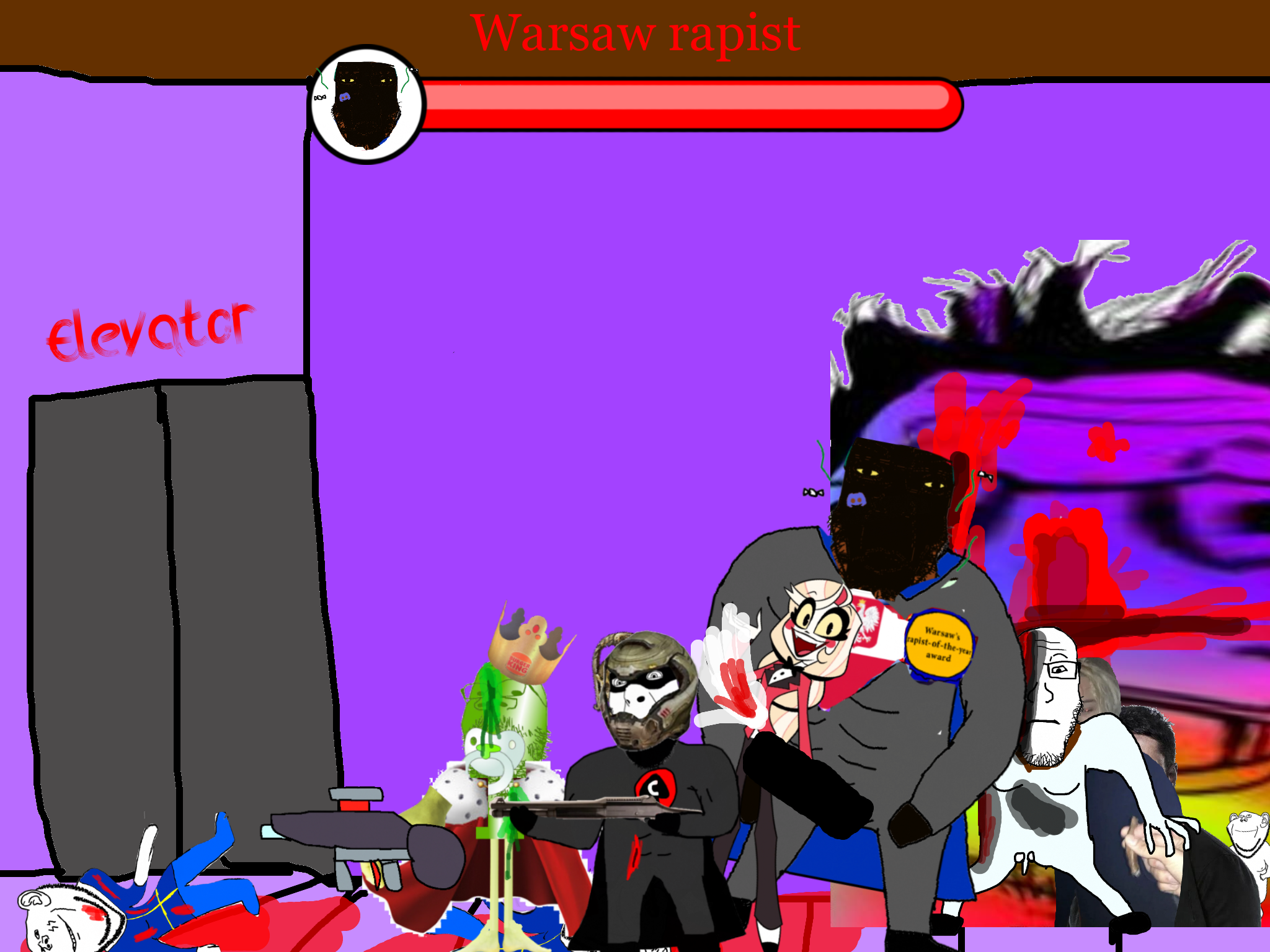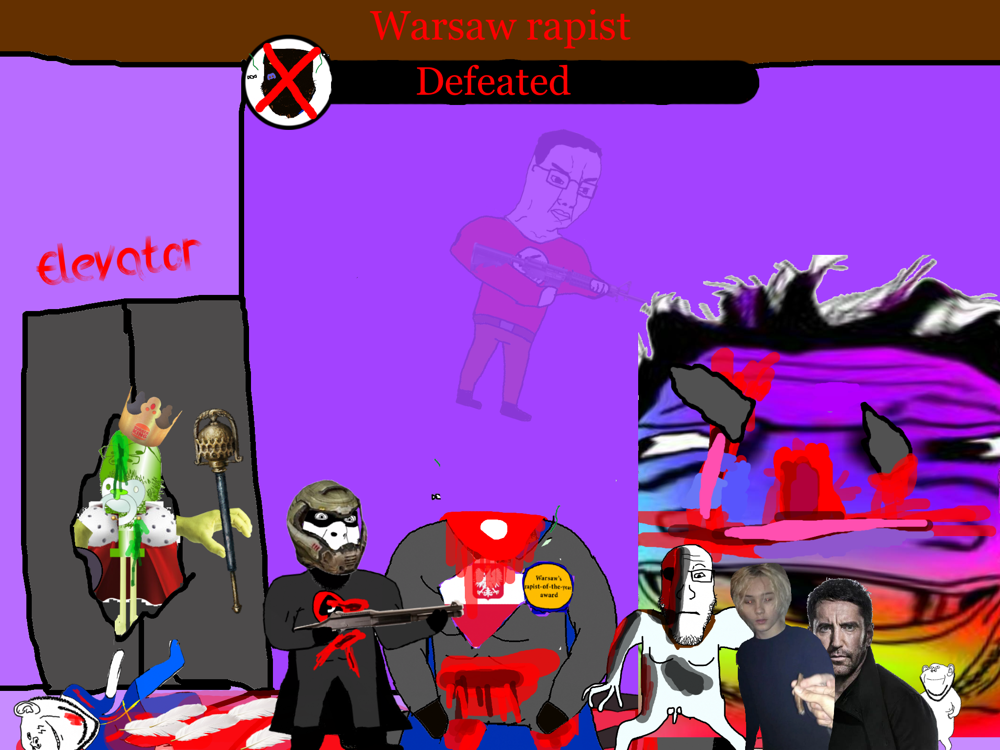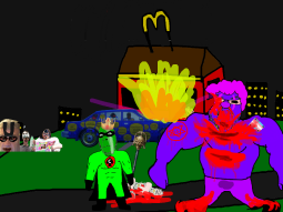 >>89184Before the gooner can respond, the king of caca comes to your location and starts beating the shit out of the gooner. The gooner dies. You are very confused.