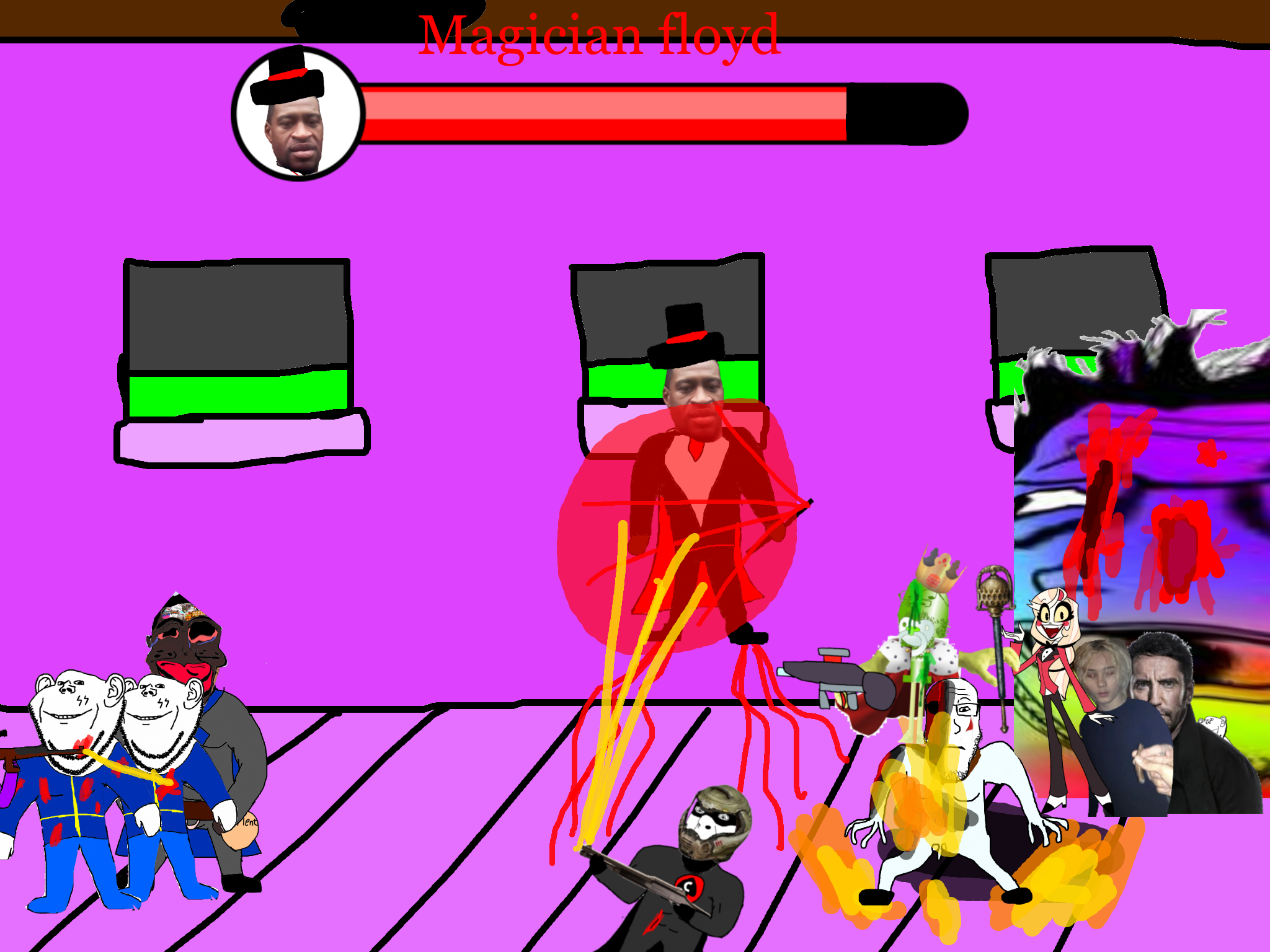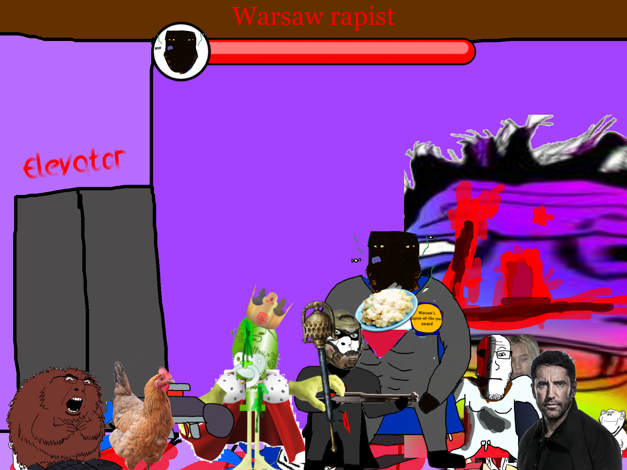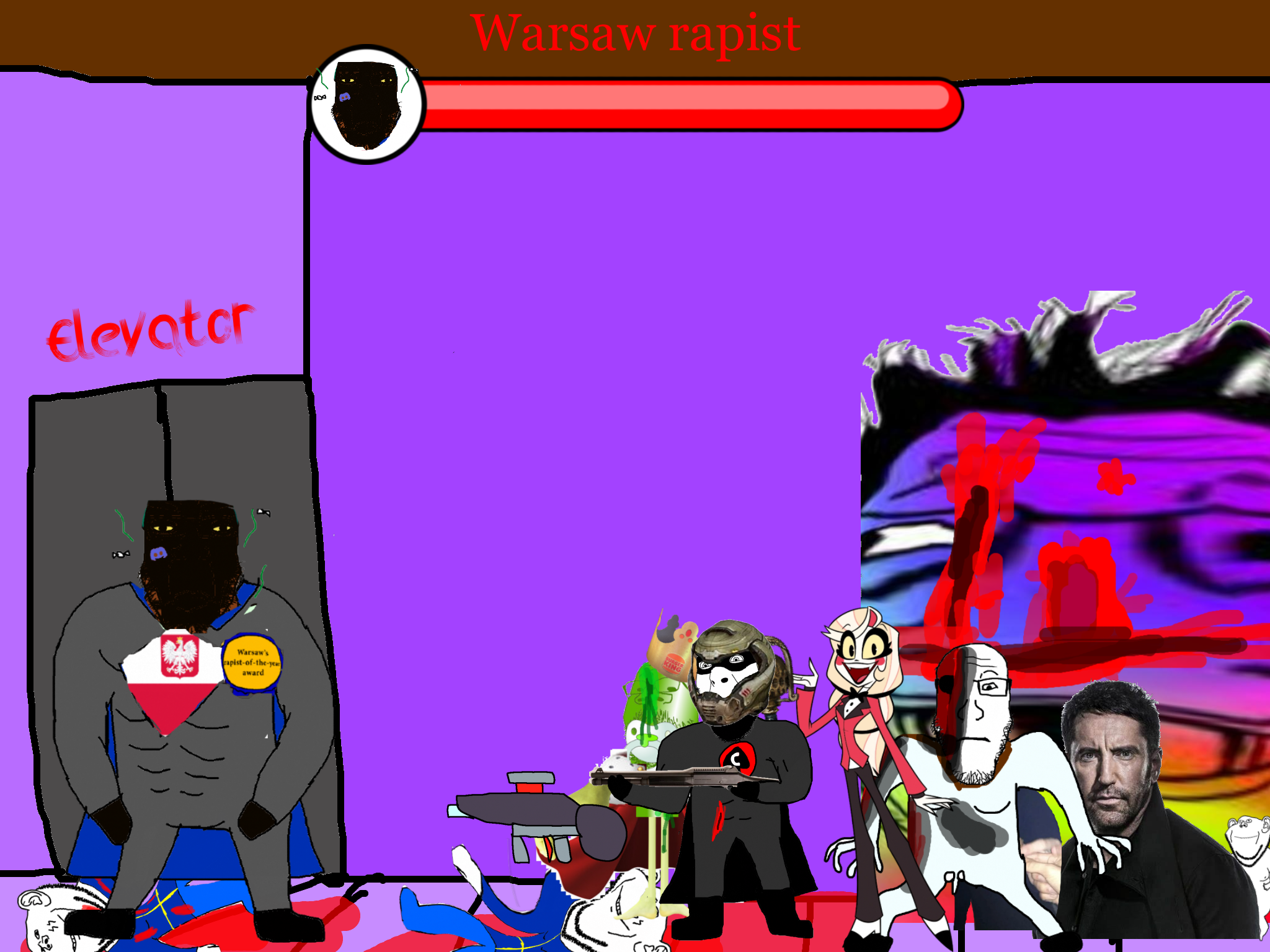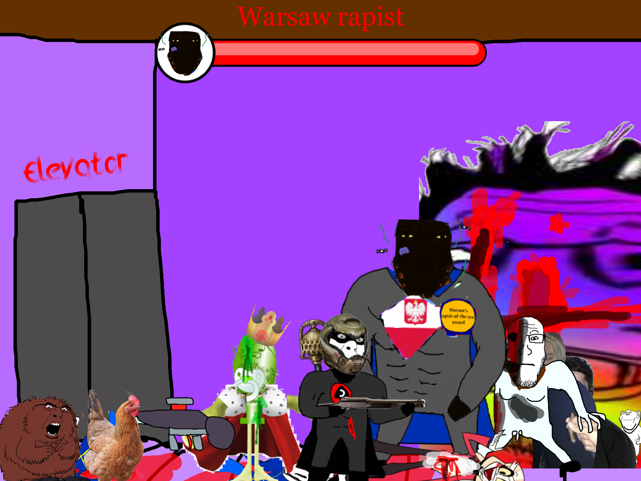 >>89184Before the gooner can respond, the king of caca comes to your location and starts beating the shit out of the gooner. The gooner dies. You are very confused.