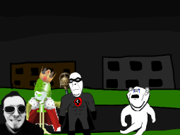 >>89193A group of gooners can be found laughing and plastering goon propaganda onto the buildings, approach them