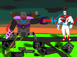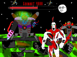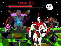 >/caca/ won!Babyjak explodes and blows off a piece of the goonbot’s armor, the core is now exposed, it glows brighter and brighter.