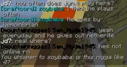 soycraftas can you pretty please stop raping me and my mountain niggaz? we are very respectful and just want to help nusois by giving them armor, food, and tools. We help indoctrinate them to the craft’ and prevent them from griefing the oldsois.Suggestions Thread