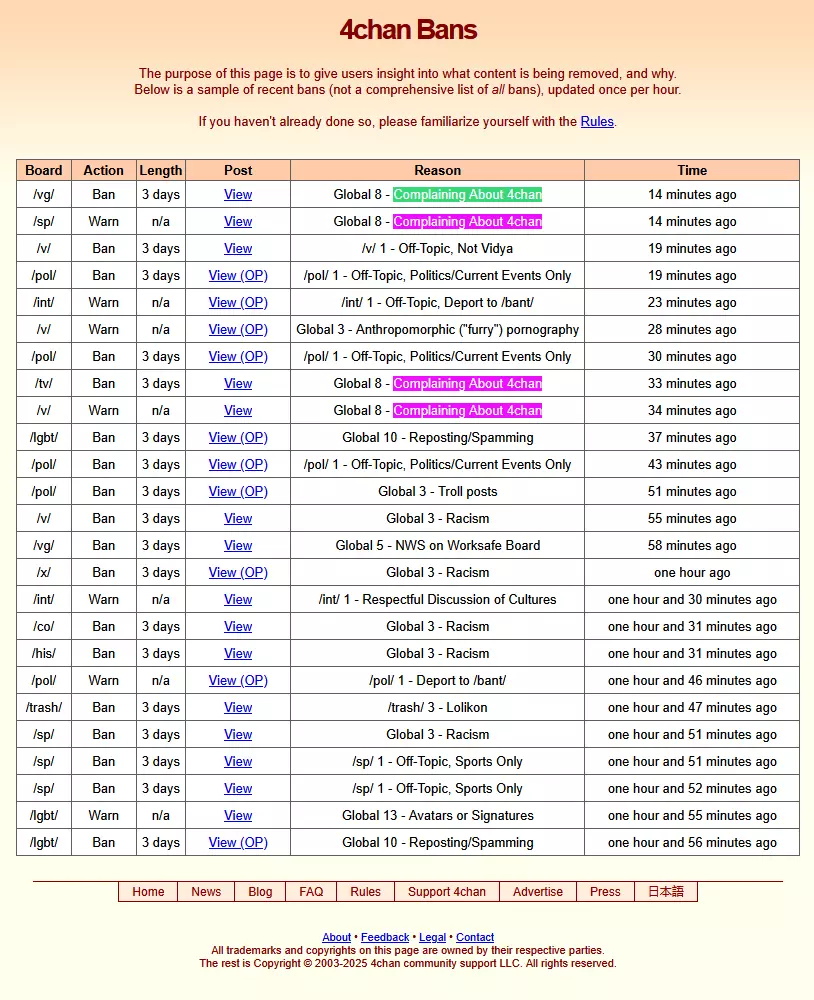 >>53662A handful of those are multi day bans