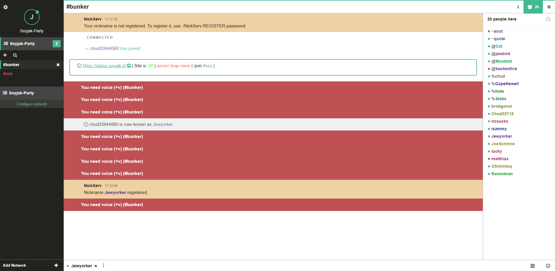 2. connect to irc.soyjak.st/6697