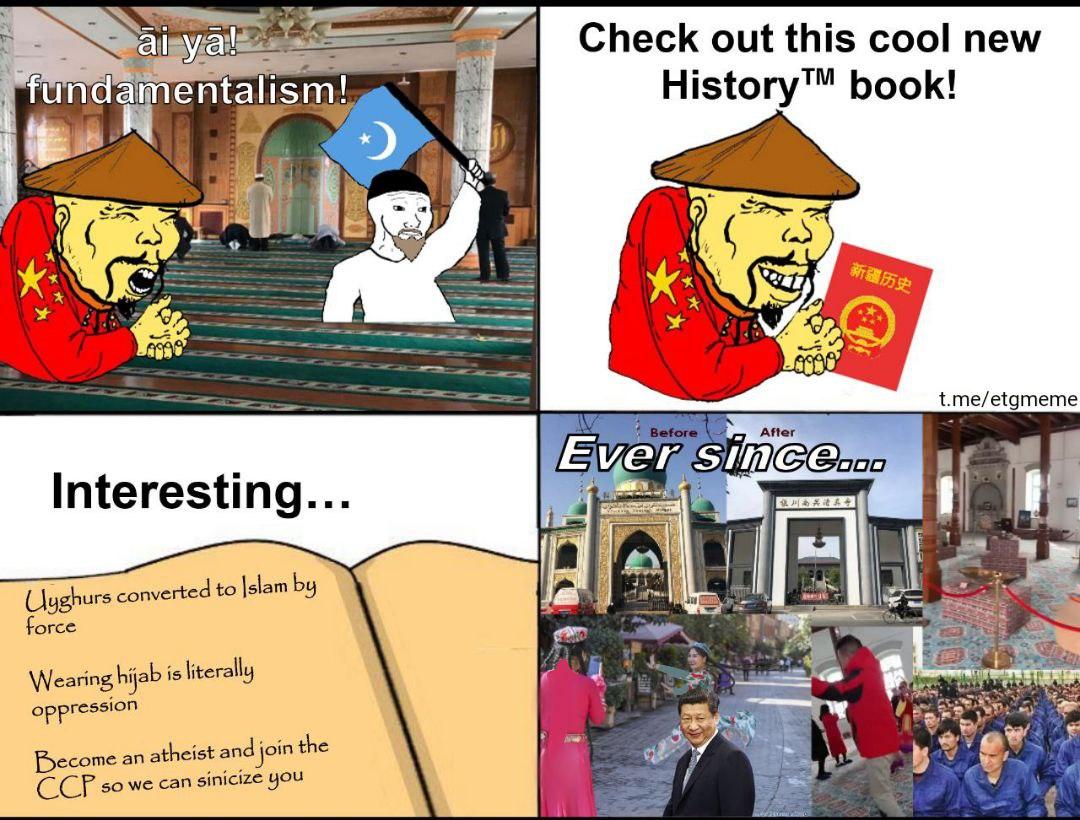 Do you know 1000 years ago Uygur (and Kazak, Uzbek and all people in there) believed in Buddhism? In the beginning of 11th century islam rats enter the west of China (Xiyu ่ฅฟๅ) and killed Buddhists here, then forced people to convert to the fucking retard islam.