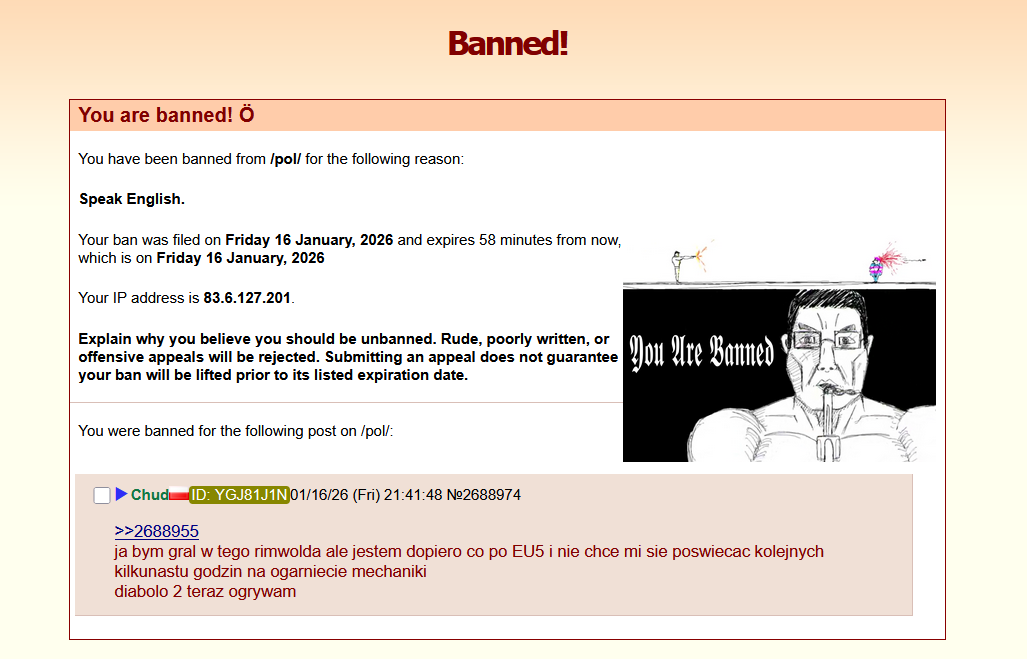 >>232814quote leaked when they spoke polish and banned them from /pol/