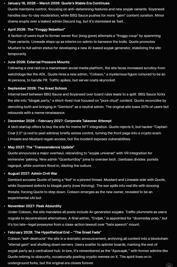 >>233513generate a hypothetical timeline of the future of the website soyjak.party until it's end
