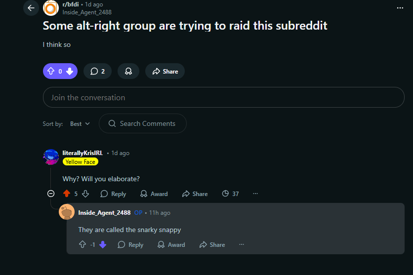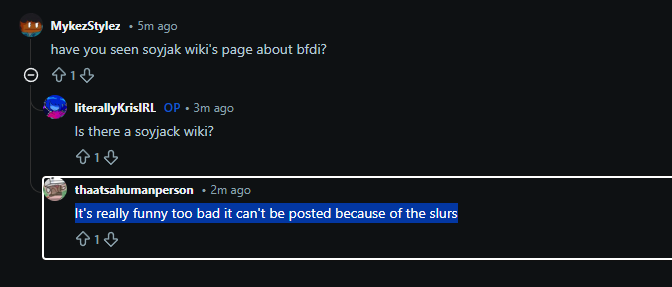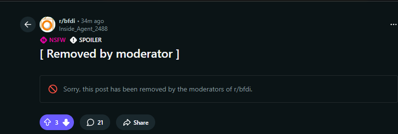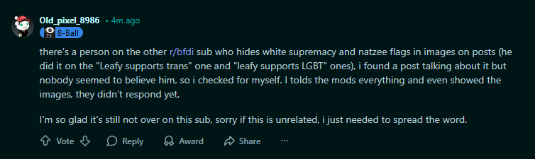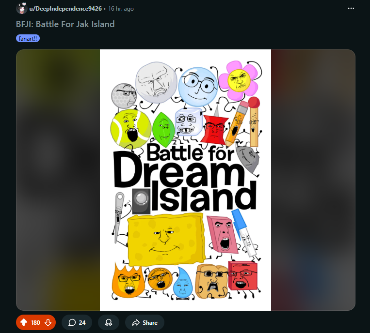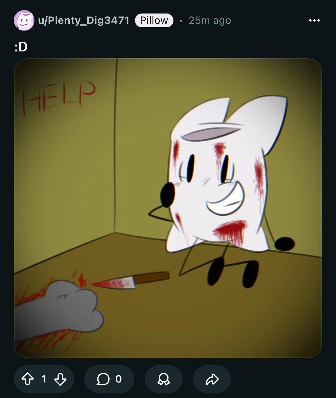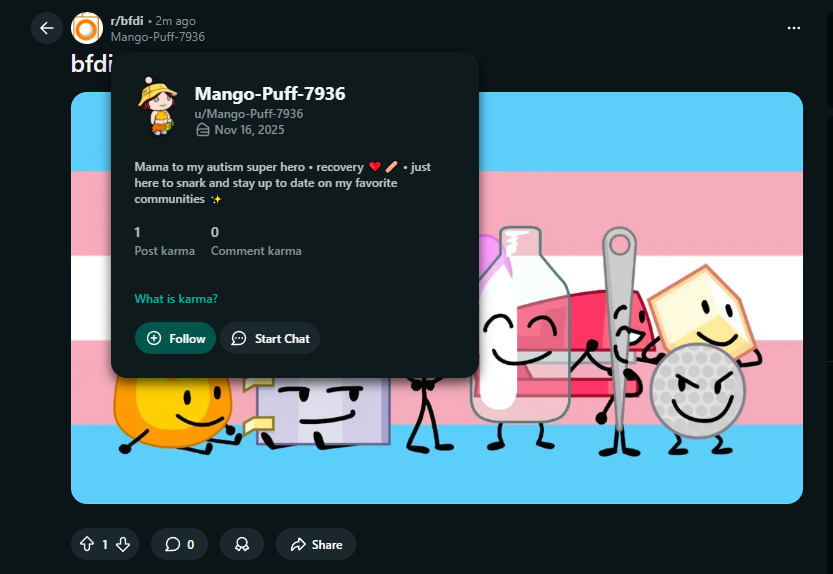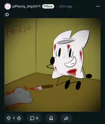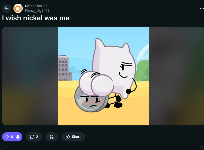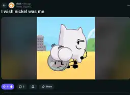 >character says ice le badand repost my 'tosses to other bfdi subreddits to farm karma
