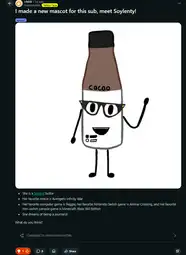 >>247542Also make a post suggesting Soylenty as a sub mascot, so it looks less weird if we force it (if not then they'll question how we got access to the same images)
