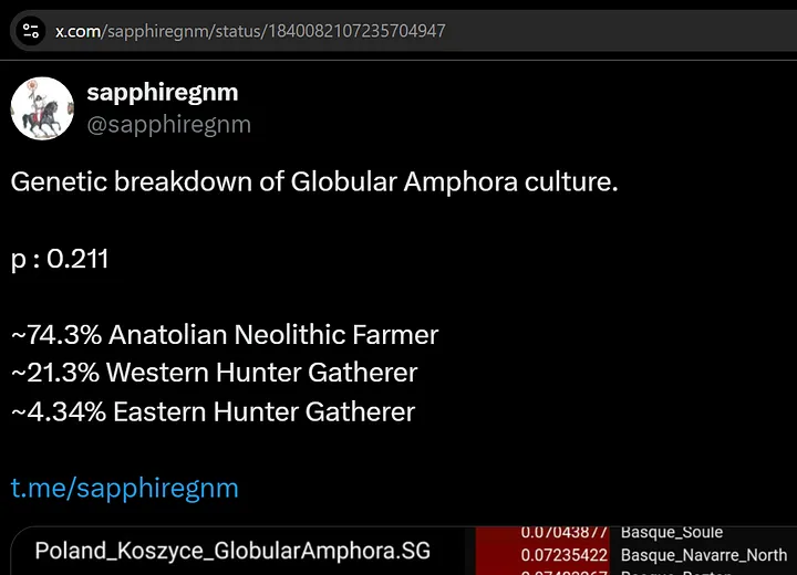 >About the "Bell Beaker east to west" hypothesis, it's actually wrong, but also sort of right. It was a two way journey starting from Iberia. Baskid like populations (Proto-Bell beakers) moved into central europe and mixed with Czechia CW/Yamnaya mixed samples (There is evidence for Yamnaya samples individually travelling from the pontic steppe into Denmark & Czechia, as R1b-L51 originated in the catacomb culture which were a direct descendant from kurgan/yamna) and then they individually spread back out into Europe