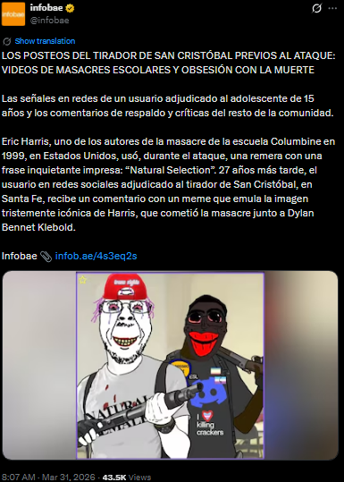 SAN CRISTÓBAL SHOOTER'S POSTS PRIOR TO THE ATTACK: VIDEOS OF SCHOOL MASSACRES AND OBSESSION WITH DEATH