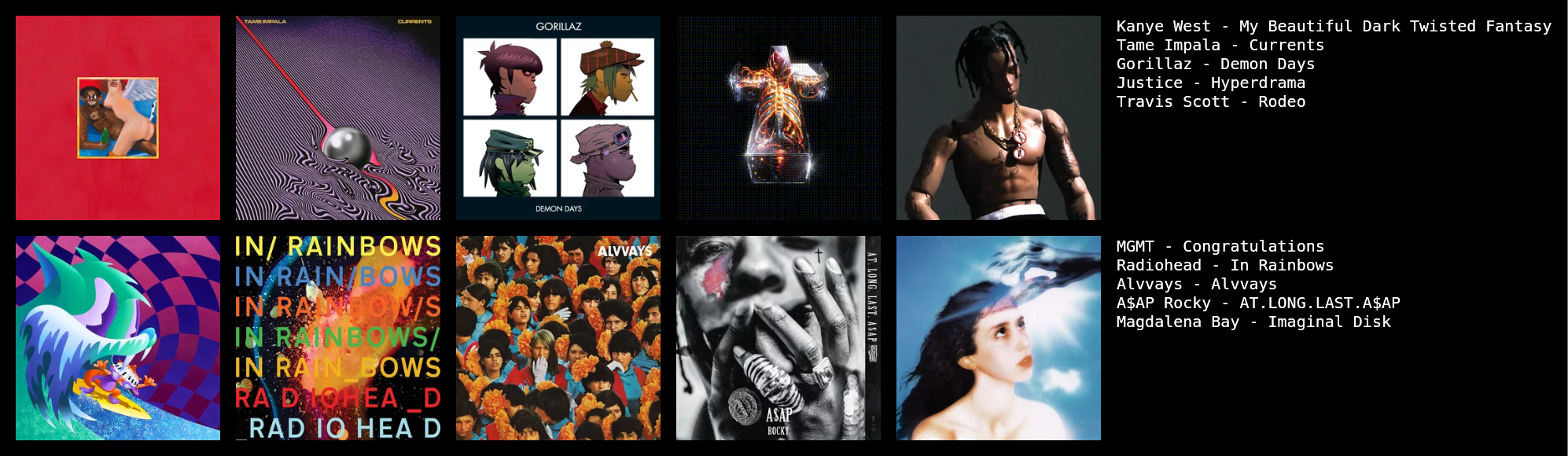 itt we post our top 10 albums, mine is pretty basic since i used to use a lot of rym and aoty but who cares wholesomeheart