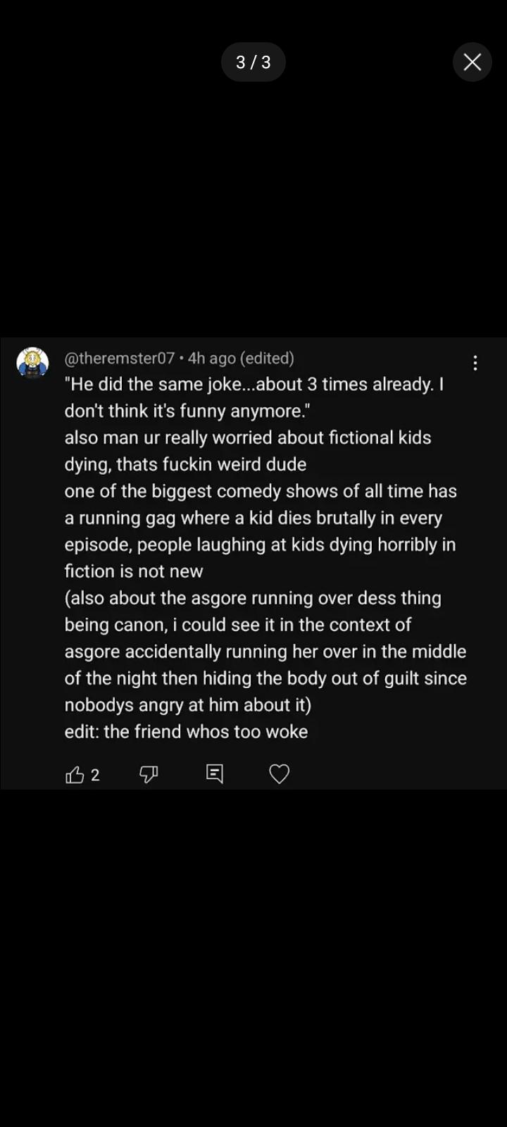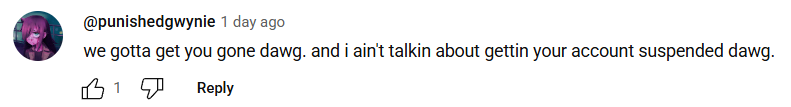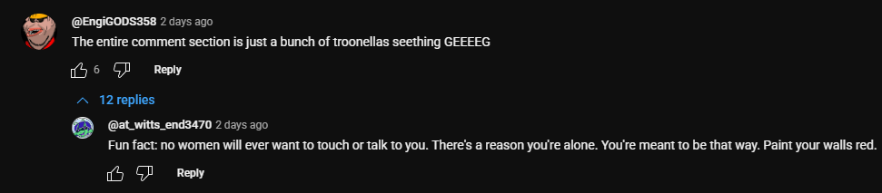 The comments section needs a TTD purge. Literally the most vile unfunniest cral imaginable