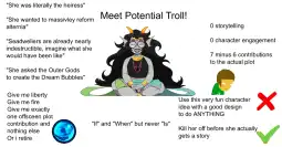 >>126503INCOMPLETE SLOP CHARACTER (just like most of the other dancestors), BASED ON A SEVERELY DISTORTED RAPIST CARICATURE OF ERIDAN, WHO ONLY APPEALS TO FUJOSHIS WITH AN ABDL FETISH AND A SEVERE INDIVIDUALITY COMPLEX.