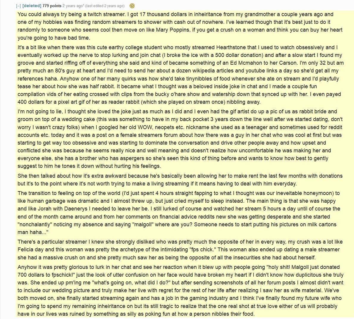 I only recently found a streamer that I like, and he doesn't use an avatar, he doesn't have a soyboy room, he's fat, mediocre looking at best, doesn't obsess over politics, is very good at a game, but also isn't a faggot that likes to act like the game should be a sweat fest and only pander to super high level gameplay.