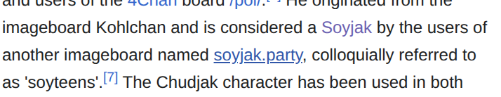 The word chud now has its own Wikipedia article Chud 03/25/26 (Wed) 00:53:00 â„–24360[Quote]