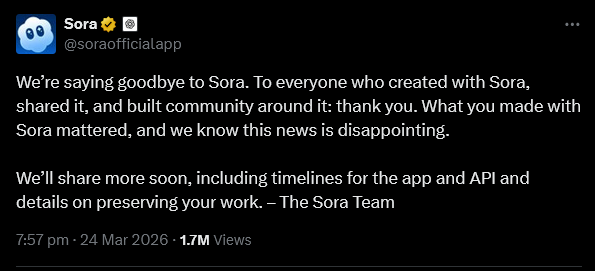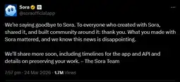 Sora has been shut down Chud 03/25/26 (Wed) 08:59:59 â„–24368[Quote]