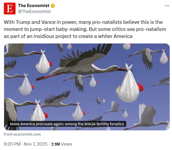 Which do the elites want? If people have more kids that could lead to overpopulation, but if people have less kids that would mean less wageslaves to give them money. I wouldn't be surprised if they're using identity politics to divide us and collapse the birthrates on purpose. I can't tell which of these outcomes they desire.