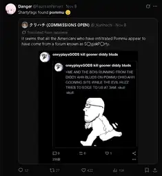 all the loli pedos are crying on twitter that the sharty took over pommu geg.