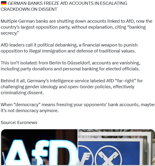 Germany today …us tomorrow when Republicans lose everything in 2028. These AfD goys in Germany are going to become homeless unless they converted all their wealth into crypto.