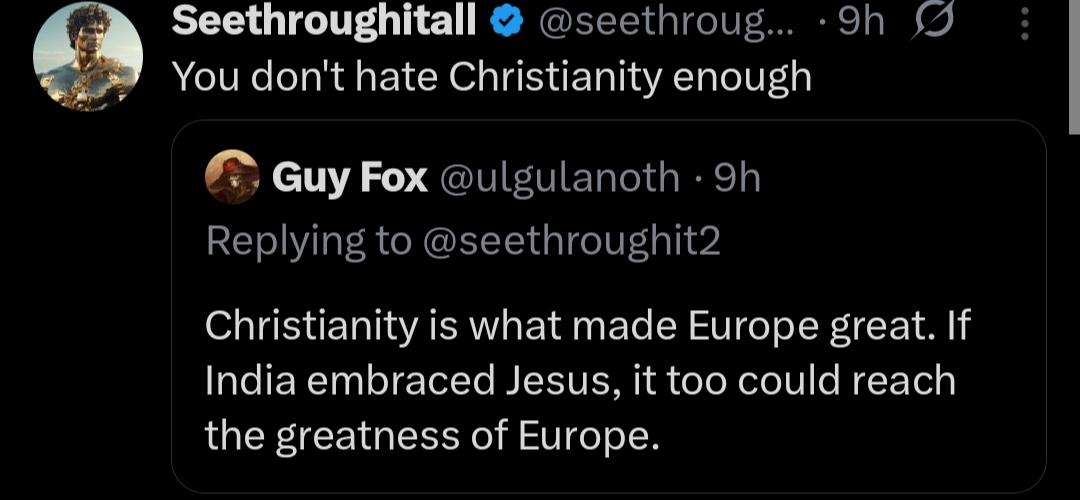 >>2404823but that would go against their faith, which is why whenever you tell a secret jeet to curse vishnu, they never do because that's their god, so a secret indian hindu condemning hinduism and shitting on indians while also being a devout indian hindu wouldn't make sense, not every right winger has a be either a christian or secret jeet in disguise