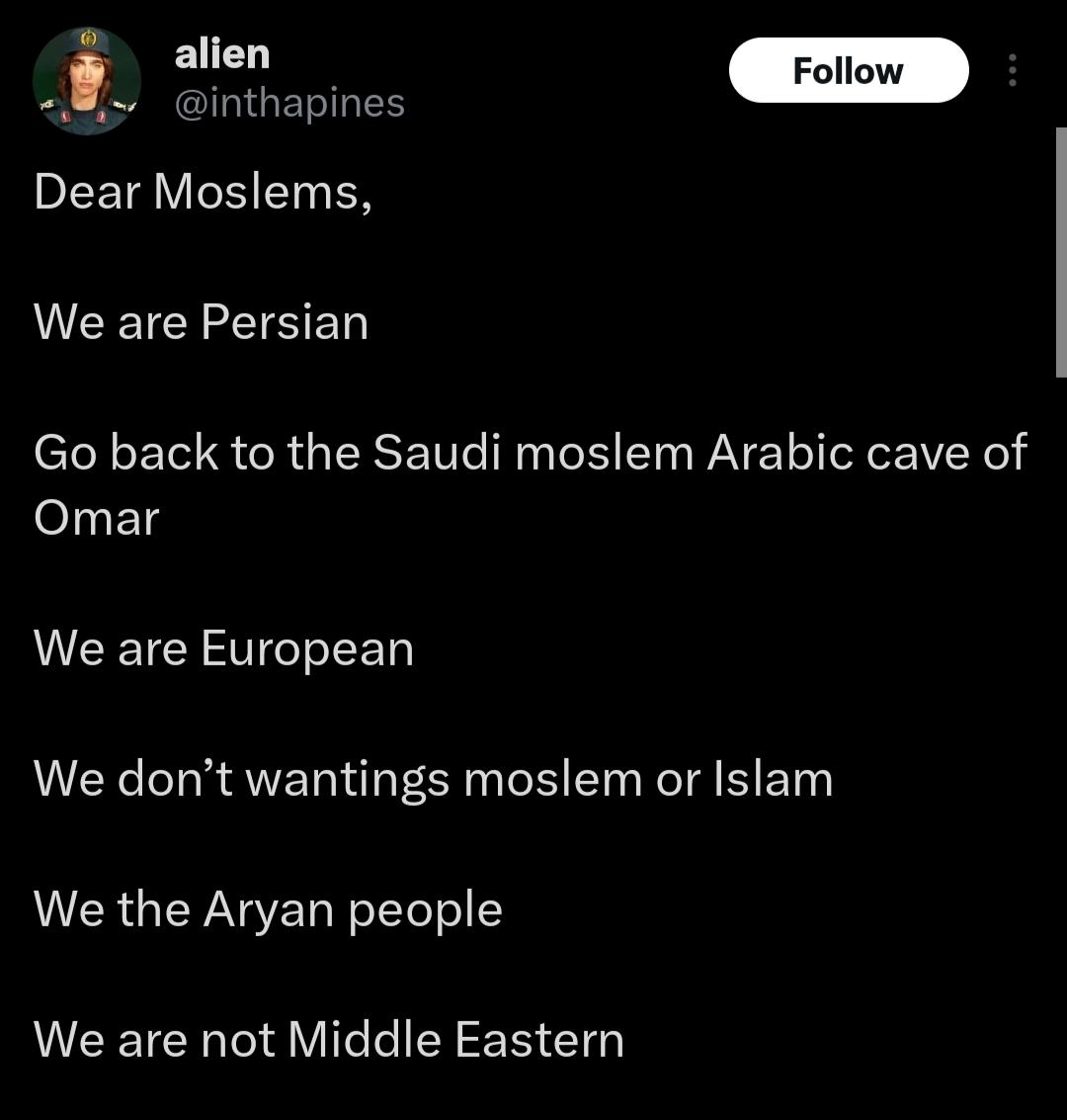 >>2405816 (OP) I thought our "secular saar" crowd was annoying until I met the Iranian ones.