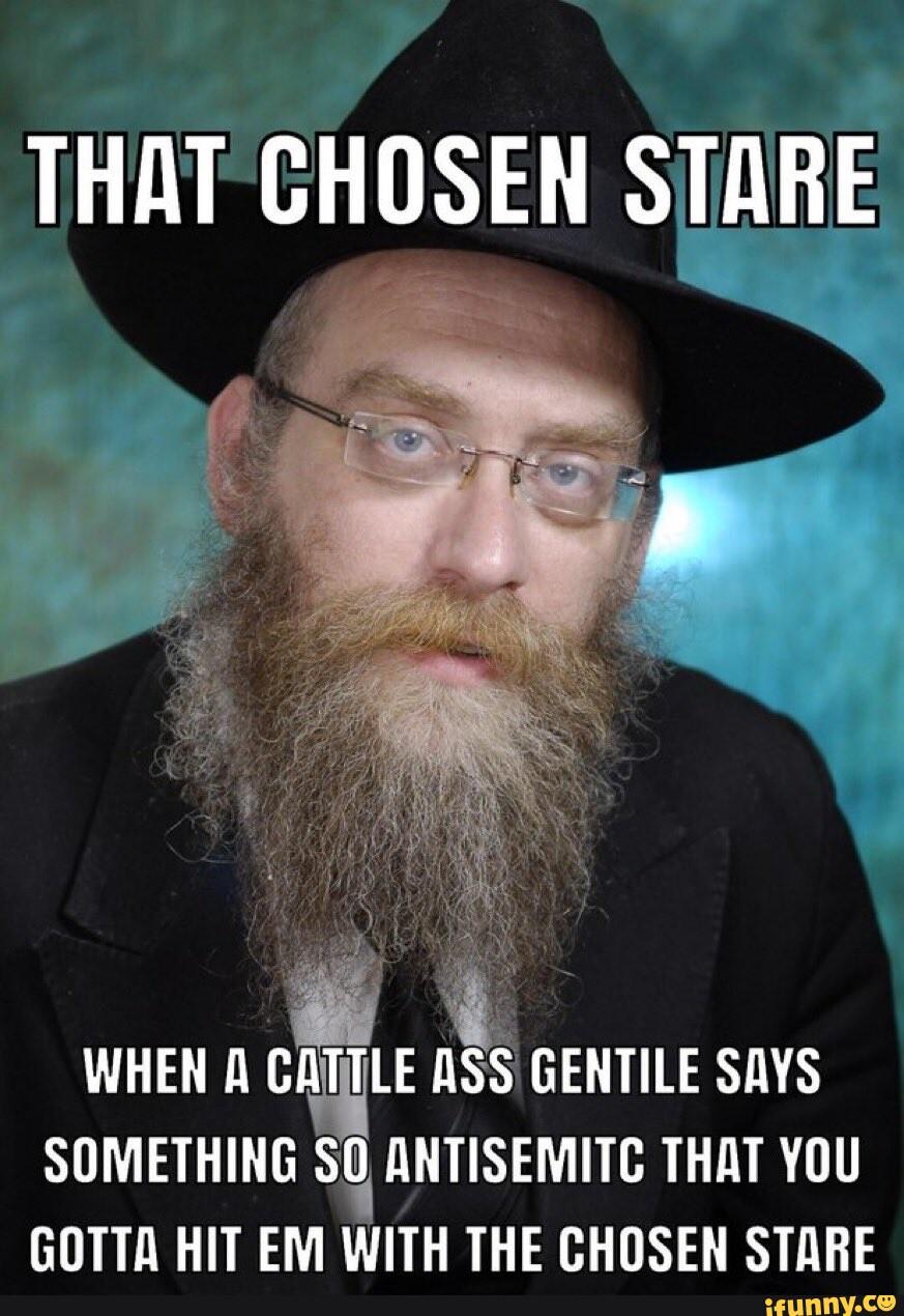 >the goyim are le cattle and we are le chosen people even though we had no country for 2,000 years and were forced to beg them to let us in and get pogrom'd and expelled whenever they felt like it up until 1947