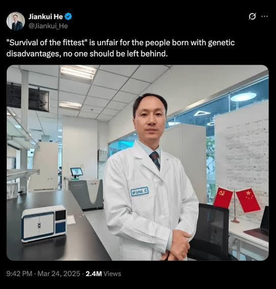 >Chinese pyipo entrusted with gene editing diseases and genetic conditions out of existence