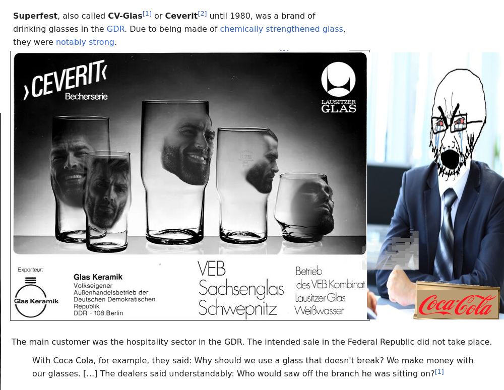 They never mass-produced these in the west because the greedy jew companies wanted people to be constantly buying new products due to glasses breaking overtime