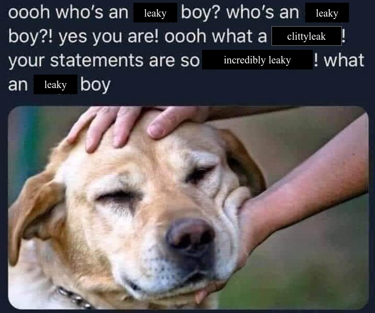 >>2576919>>2576927obsessed offsiter still leaking, let me slapfight the others bruh