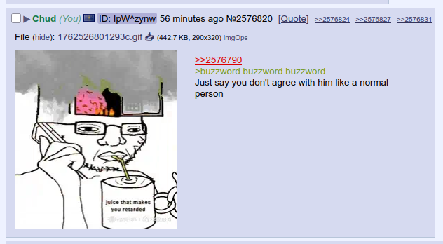 >>2576908>you are da nusoi htsm>actually you are da 4cuckjust leaking uncontrollably and no longer making sense at this point geg