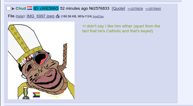 >>2576827I didn't say I like him either (apart from the fact that he's Catholic and that's keyed)